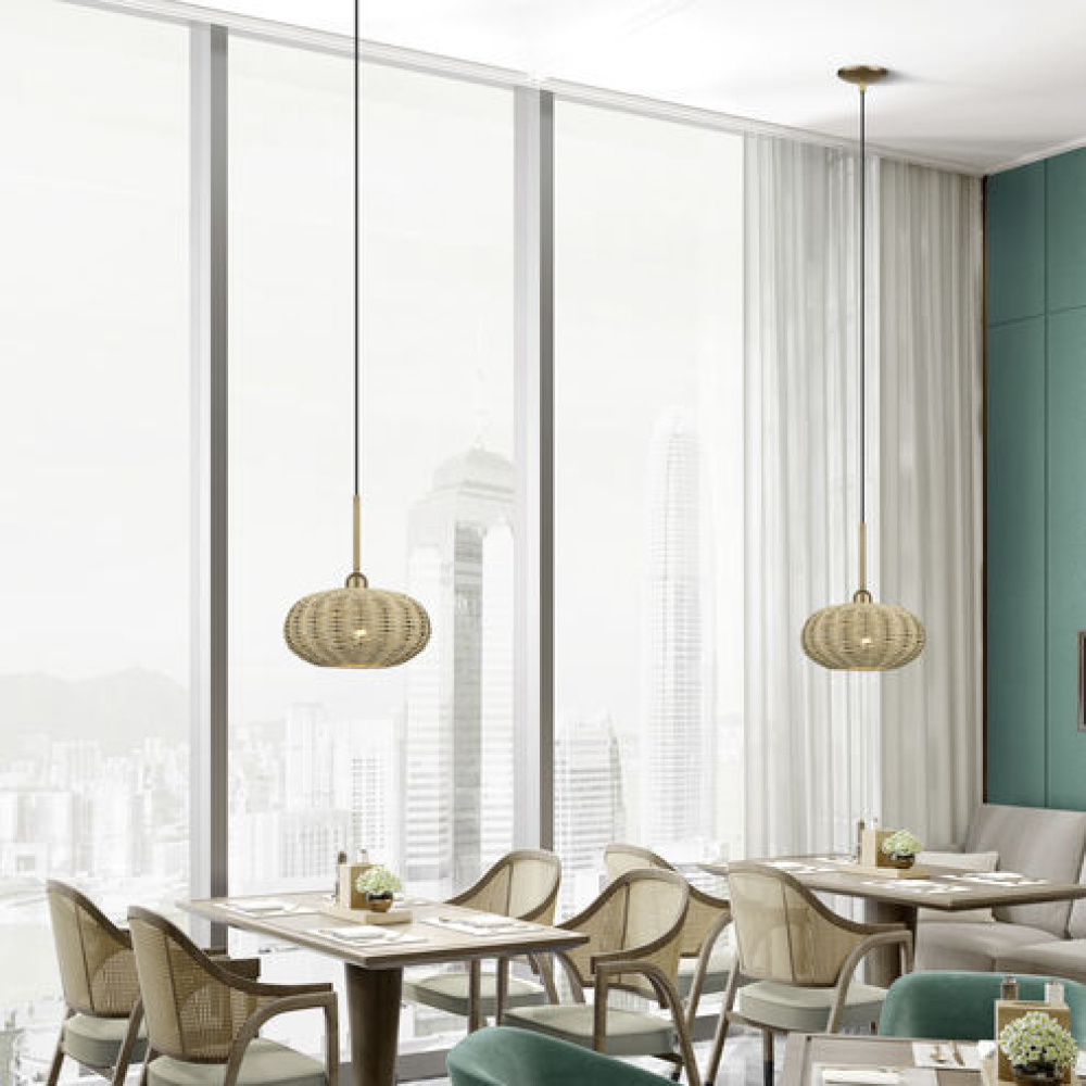 Whatever the season outside, there’s always a laidback beach house atmosphere indoors – with the sunny, transitional Summervine lighting collection. This natural-feeling, versatile ceiling and wall light design features slender, curved metal frames (in attractive metallic finishes) and luminous globe- and ellipsoid-shaped shades – handwoven with the remarkably durable and water-resistant paper rope material, finished in rich French beige.