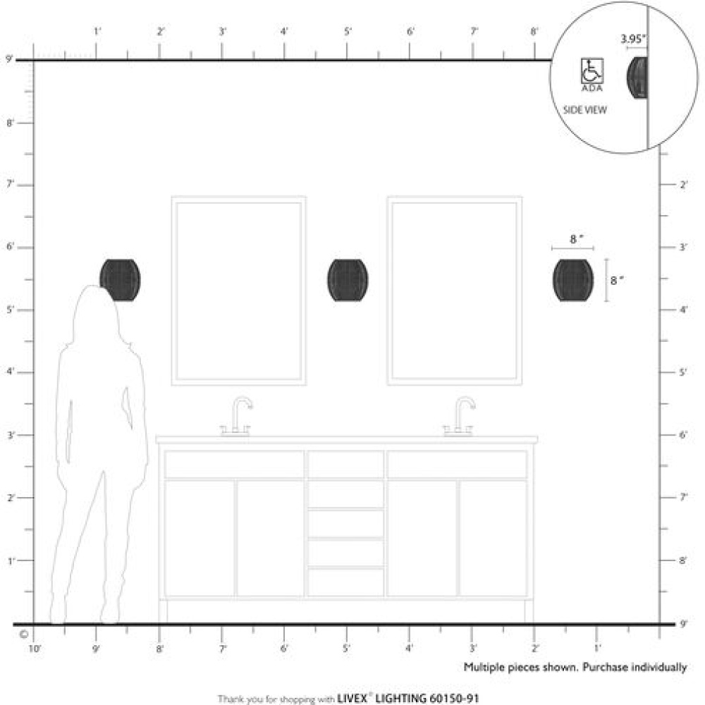 Livex Lighting 60150-91 - 1 Light Black ADA Sconce