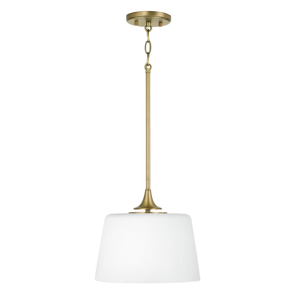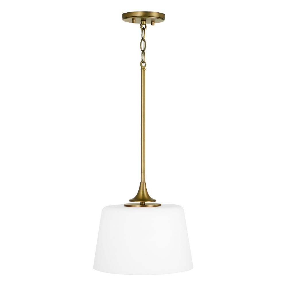 11.75"W x 11.25"H 1-Light Dual Mount Pendant or Semi-Flush in Aged Brass with Soft White Glass