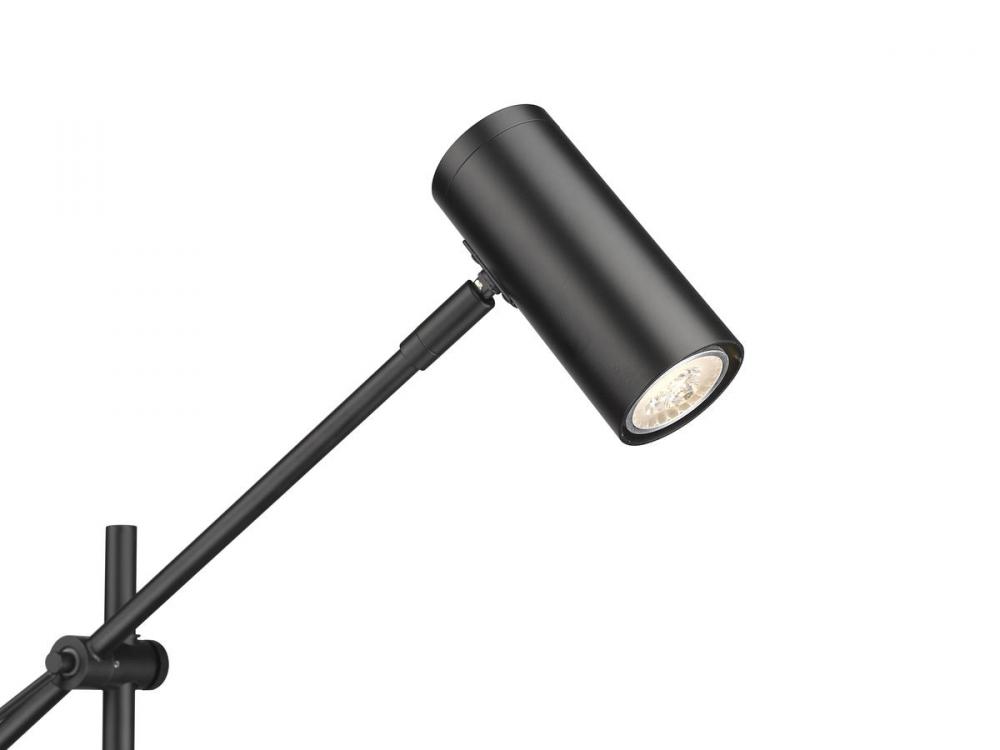 This contemporary floor lamp with a cylindrical shade will brighten up your home office or living room. Serving as the ultimate task light, this fixture is constructed of steel in a matte black finish for a sleek and simplistic appeal.