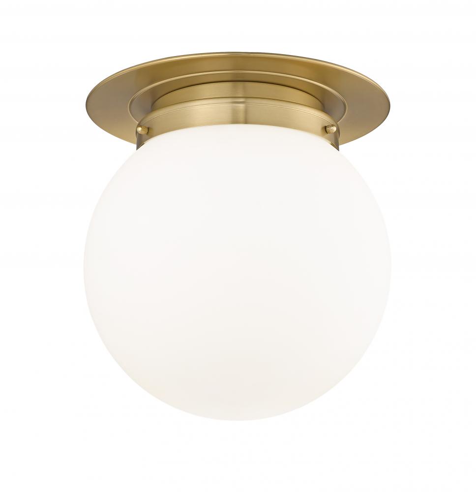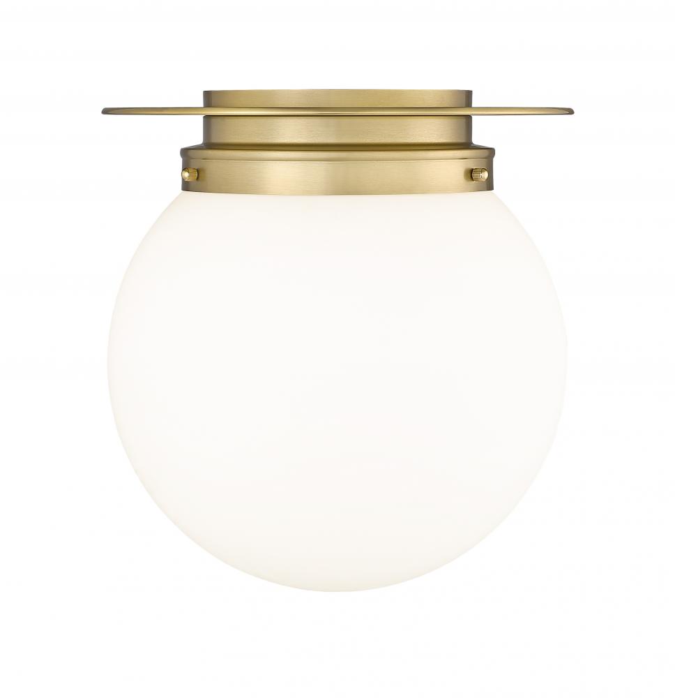 Deliver clean artistic quality into your space with this chic flush mount fixture from our Calhoun collection. This fixture stands out with a white opal glass globe attached to warm heritage brass finish steel framing and metal accents, creating a bold signature statement with easy style.