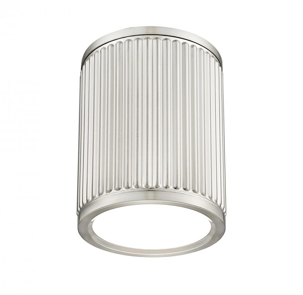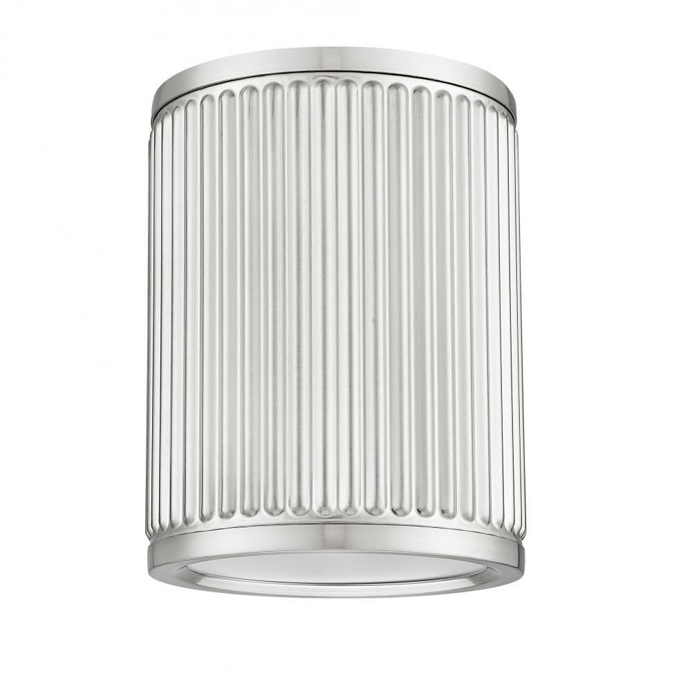 Designed for energy efficiency, this modern cylindrical flush mount ceiling light sets the tone with its compelling texture and bright brushed nickel finish. It delivers bright, direct illumination with a frosted acrylic diffuser, perfect for halls, living areas, kitchens and much more.