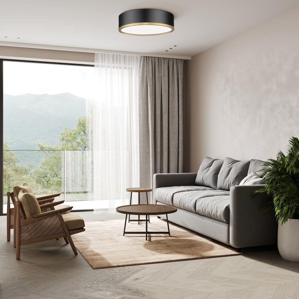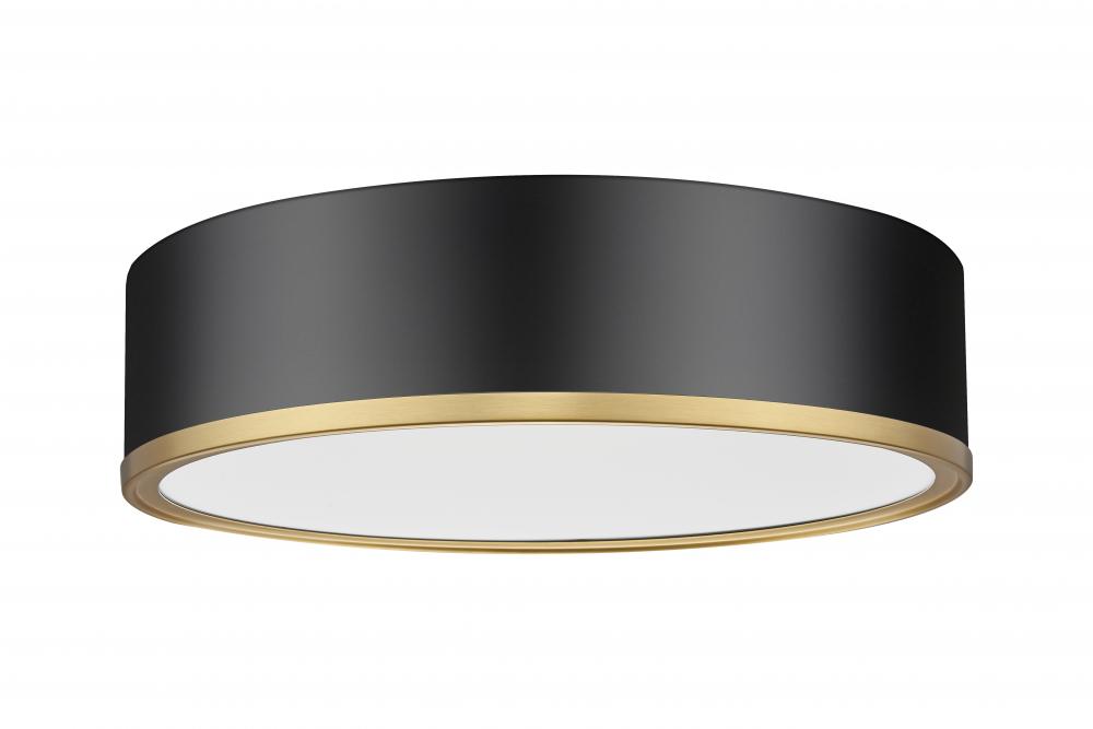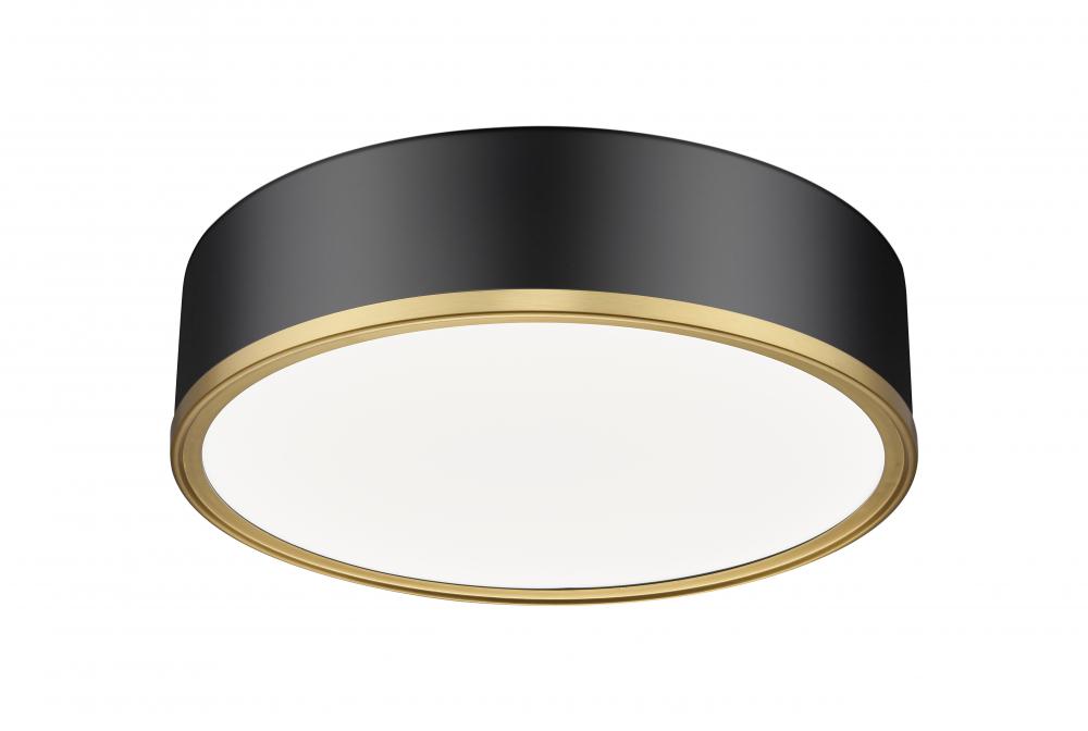 Complement sophisticated surrounding decor with the rich dual tone finish featured on this modern flush mount ceiling light. In matte black with modern gold banding, the fixture sets the tone in your living spaces with its sleek, round silhouette and frosted diffuser for inviting illumination. The integrated LED light source is dimmable and color selectable, offering the right ambiance for virtually any space.