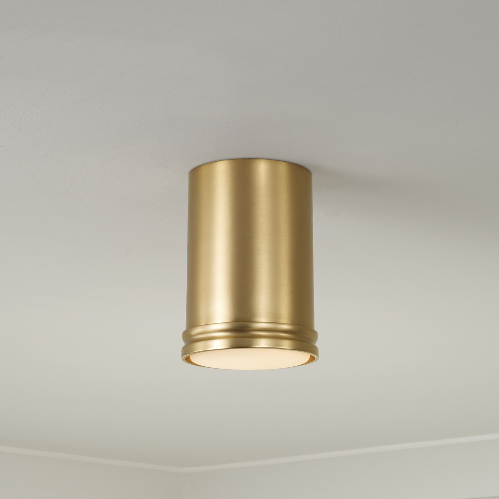 Crafted in a sleek, cylindrical silhouette, the Griffin Mini Flush Mount brings character and dimension to traditional task lighting. The Aged Brass finish creates a brushed visual texture on the can light, while the Soft White glass aesthetically illuminates the integrated LED. Complete with color changing technology — choose from three hues: 3000, 4000, or 5000 Kelvin.