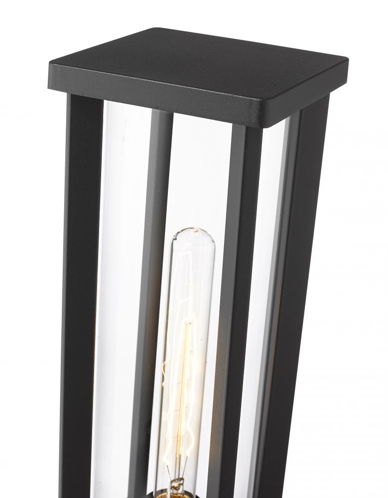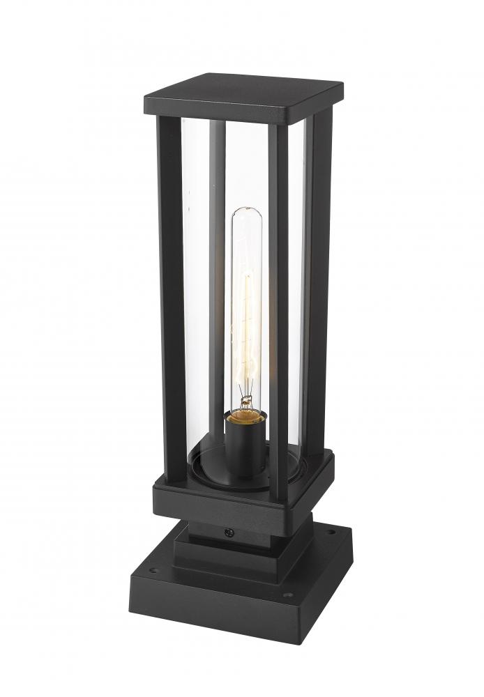 Straight from the elegant and sophisticated Glenwood lighting collection, this contemporary outdoor pier mounted fixture is perfectly suited for driveway columns and architectural elements around a patio space. Encased in a rectangular, ultra-modern aluminum frame with thin corner columns, this lighting piece features a cylindrical clear glass lantern to protect the interior bulb from the elements. In addition, its dark black frame and pedestal base allow this mounted lantern fixture to complement your homes existing landscape design and facade.