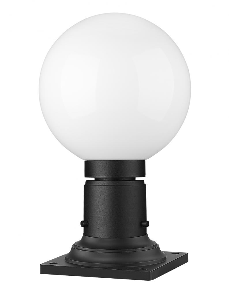 The Laurent one-light pier mounted fixture delivers a charming Mid-Century Modern inspired motif perfect for updating an exterior space. Village charm goes retro and elegantly simple with a black finish aluminum pier delivering fabulous versatility. A festive opal glass globe creates whimsical style and perfect proportion for any setting.