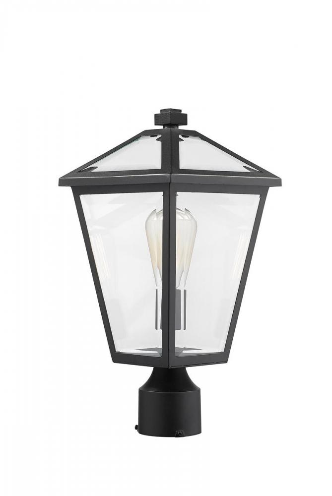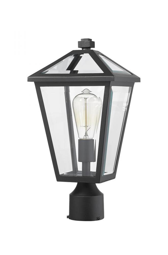 Illuminate an exterior front or back walkway with a classic fixture reflecting a charming village theme. Made from Midnight Black metal and clear beveled glass panels, this one-light outdoor post mount fixture delivers a charming upgrade with industrial-inspired attitude.