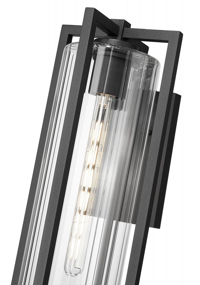 Modern style updates an exterior structure with elegance and a hint of tradition. This one-light contemporary outdoor wall light features linear framing that makes a statement and is dimmable for variable light levels. A Coastal black paint finish is smooth and inspiring as it coats lightweight aluminum framing, with ribbed glass adding a textural impact.
