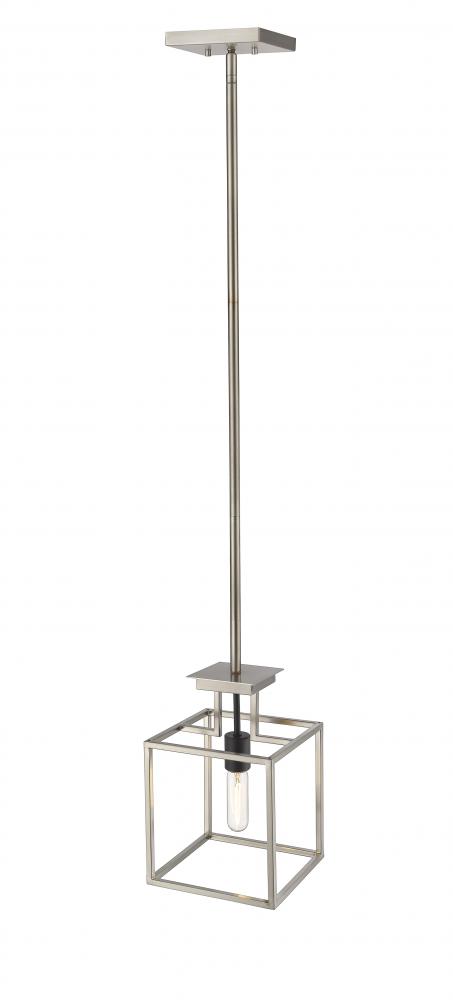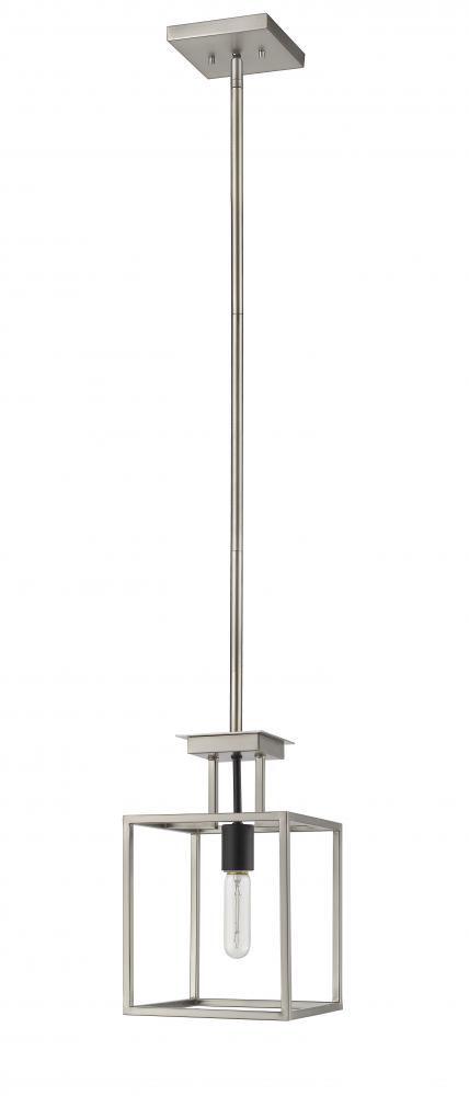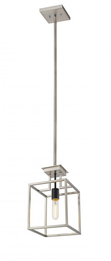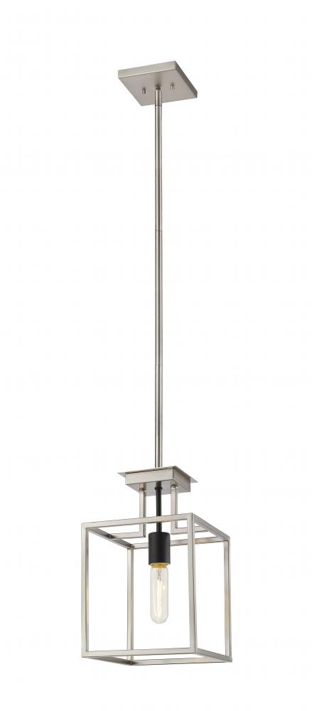 Tasteful form and function add a sophisticated touch to a stylish mini-pendant fashioned from steel and given a dual finish. Brushed nickel and black create a tempting blend in a geometric style frame and inner fitting, as a single bulb sends soft illumination in a downward targeted direction.