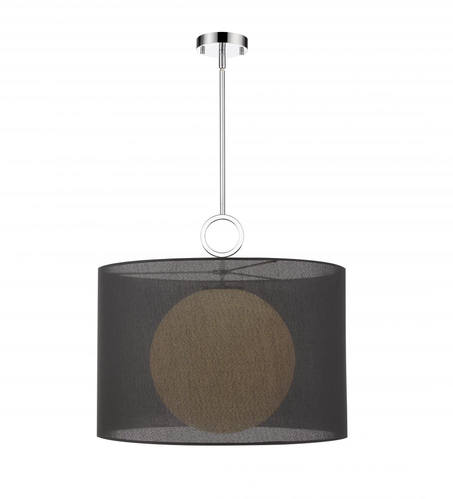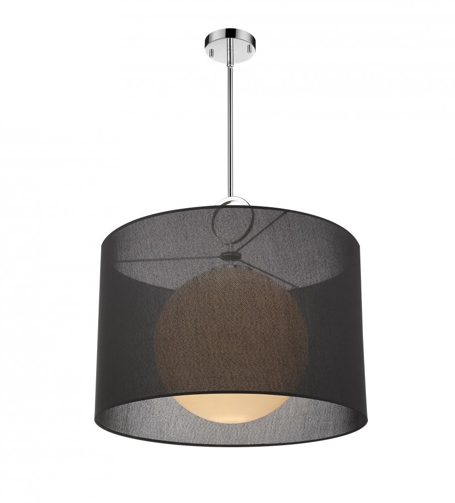 With a sleek, chrome frame and a modern aesthetic, this single-light pendant will elevate your decor to new heights of style. A bold, black fabric shade lends eye-catching allure to this exquisite piece.
