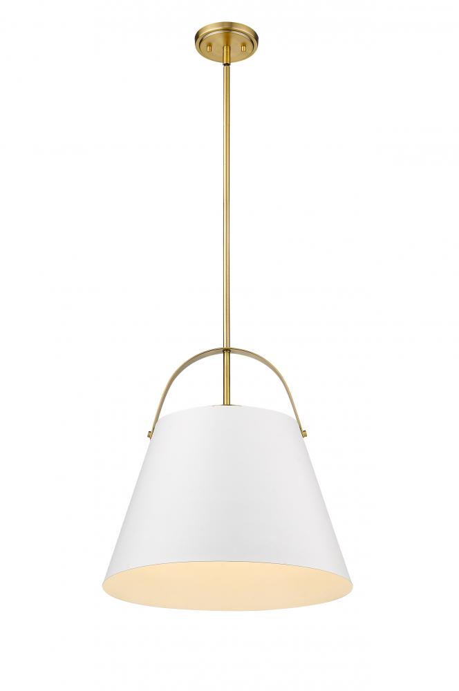 Classic industrial style adds a casual influence to this transitional single-light pendant, a superb choice for a kitchen or entertaining space. With a tapered matte white finish metal shade and heritage brass finish steel frame, it offers up an airy, relaxing aesthetic with plenty of personality.