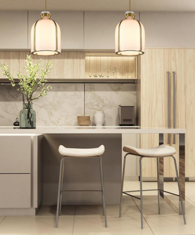 This one-light chandelier will invite modern farmhouse appeal to your dining room, kitchen island, or breakfast bar. It features a steel construction with a rubbed brass finish and a white opal glass shade to diffuse the light. The crisp and clean design of this chandelier makes it a focal point in your space.