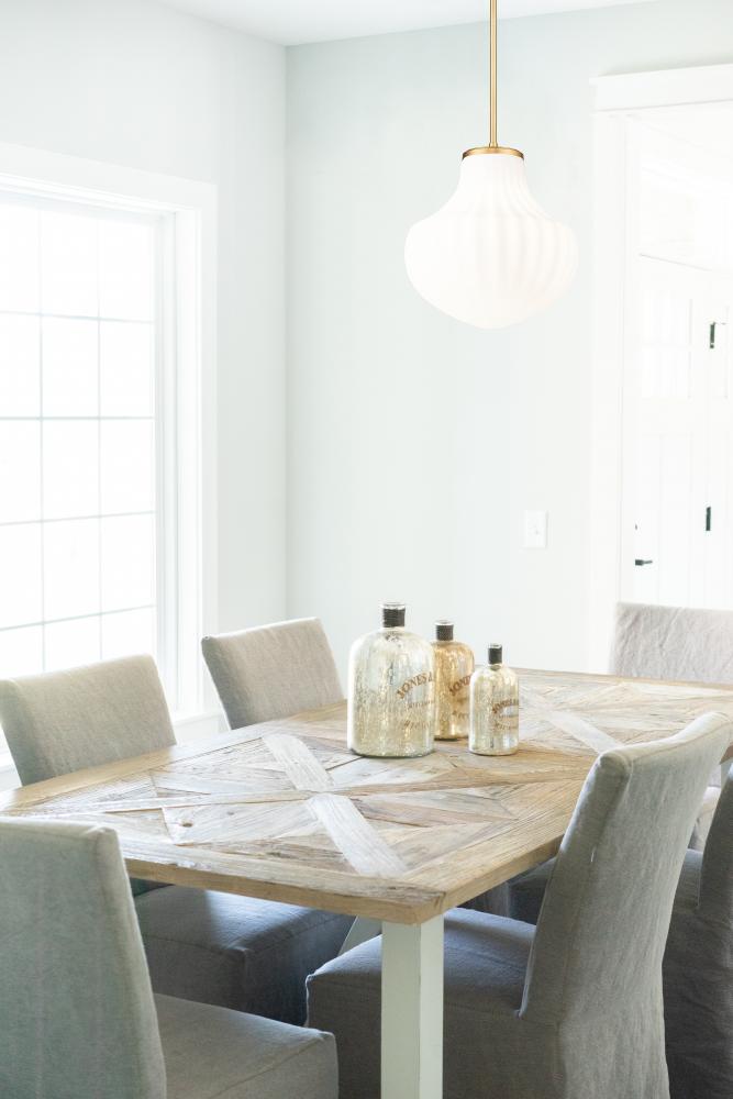 The Newbury pendant series offers an update to the classic schoolhouse look, a perfect complement for transitional, contemporary, and Modern Farmhouse interiors. Featuring white ribbed glass shades in a choice of three shapes, the fixtures are available in