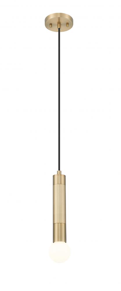A petite canopy, slim cord and elongated tube receive a rich modern gold finish on this contemporary pendant. Its a clean, streamlined design with one light, perfect for smaller spaces or grouped in a larger lighting ensemble. Delicate details add richness to the warmth of its finish, capturing refined aesthetics that are sure to enchant.