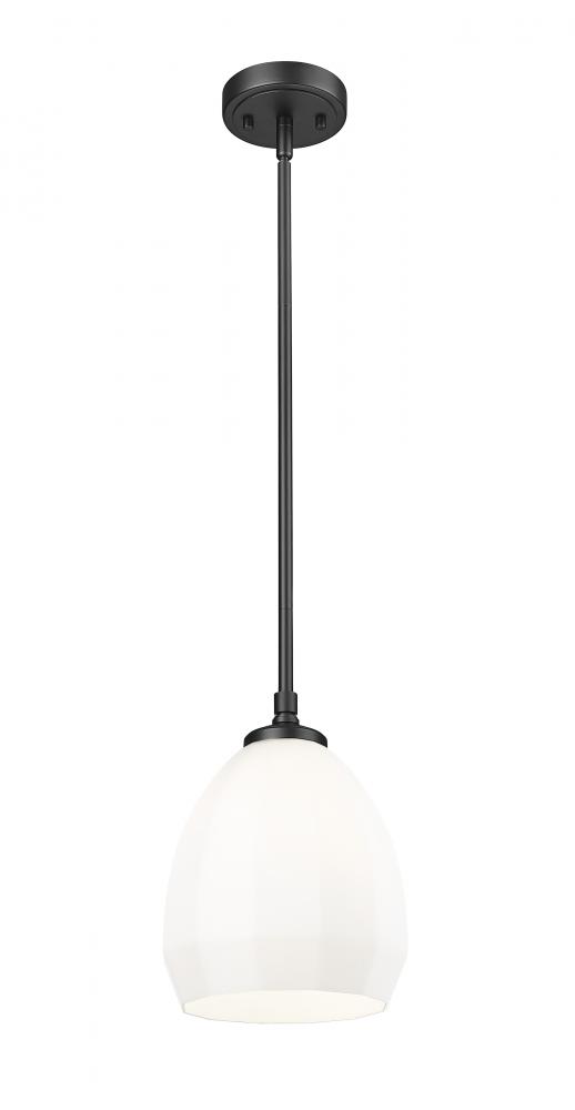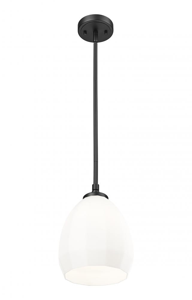 Put finishing touches on an entry or breakfast nook with the clean, familiar style of a modern one-light pendant. This design boasts a simple silhouette with a steel frame in a rich matte black finish that ensures depth and contrast. A delicate matte opal glass shade is an airy finishing touch, offering a classic domed silhouette while delivering inviting illumination.