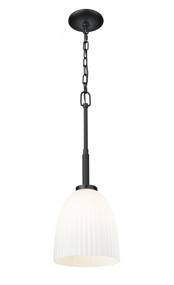 Refined simplicity meets modern contrast in this one-light pendant with a matte black finish. The ribbed matte opal glass creates a soft, warm diffusion that brings depth to even the most minimal spaces. Whether alone or in a cluster, it leaves a bold and balanced impression.