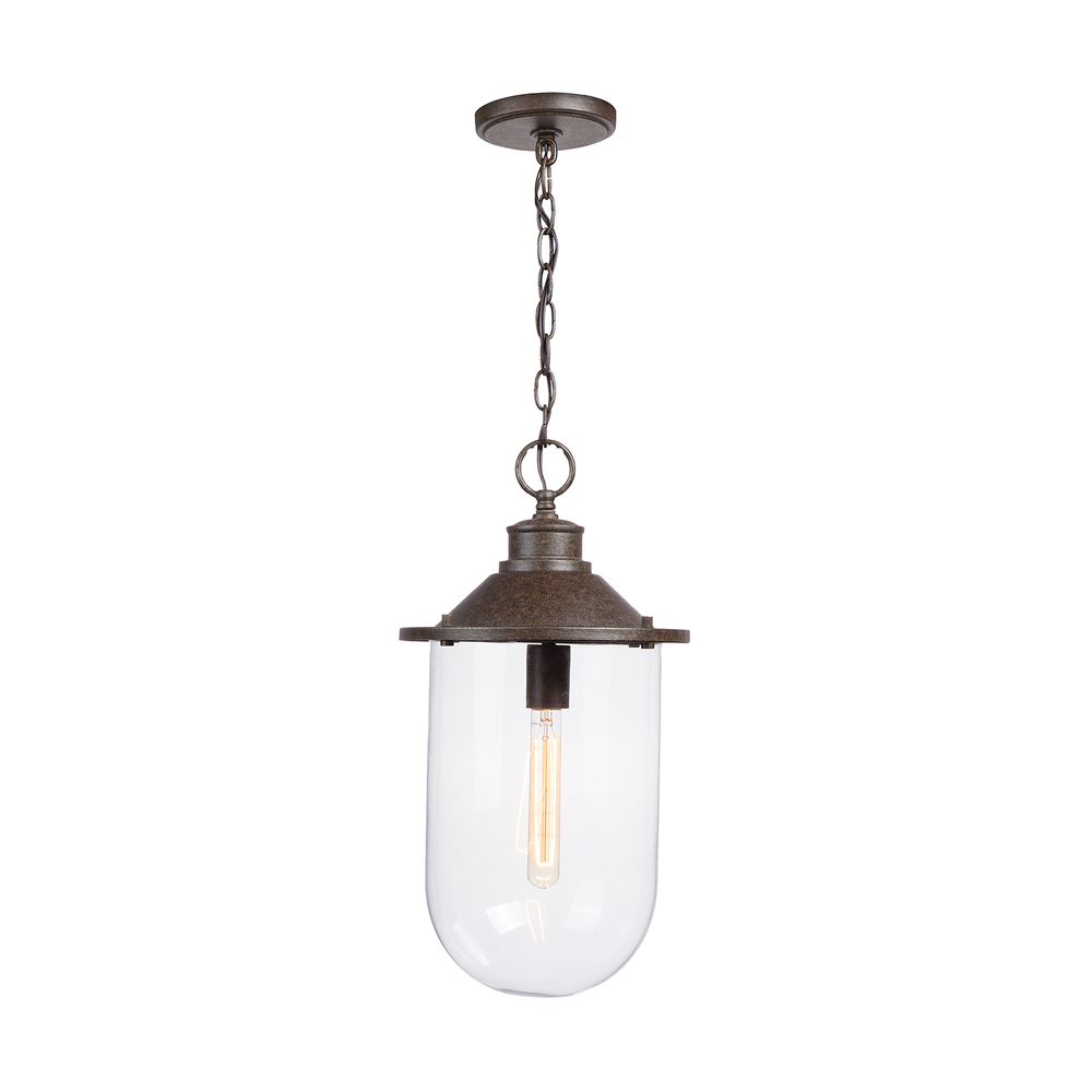 Inspired by old-fashioned lanterns and urns, this 1 light pendant brims with a mix of rustic farmhouse and coastal vibes. Clear glass is offset by a metal roof finished in Mineral Brown, a rich, hand-painted finish with hand-applied rustic overtones and visual texture.