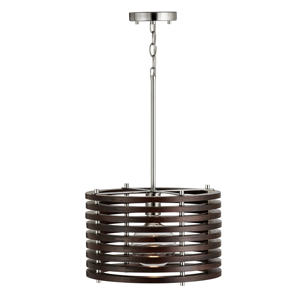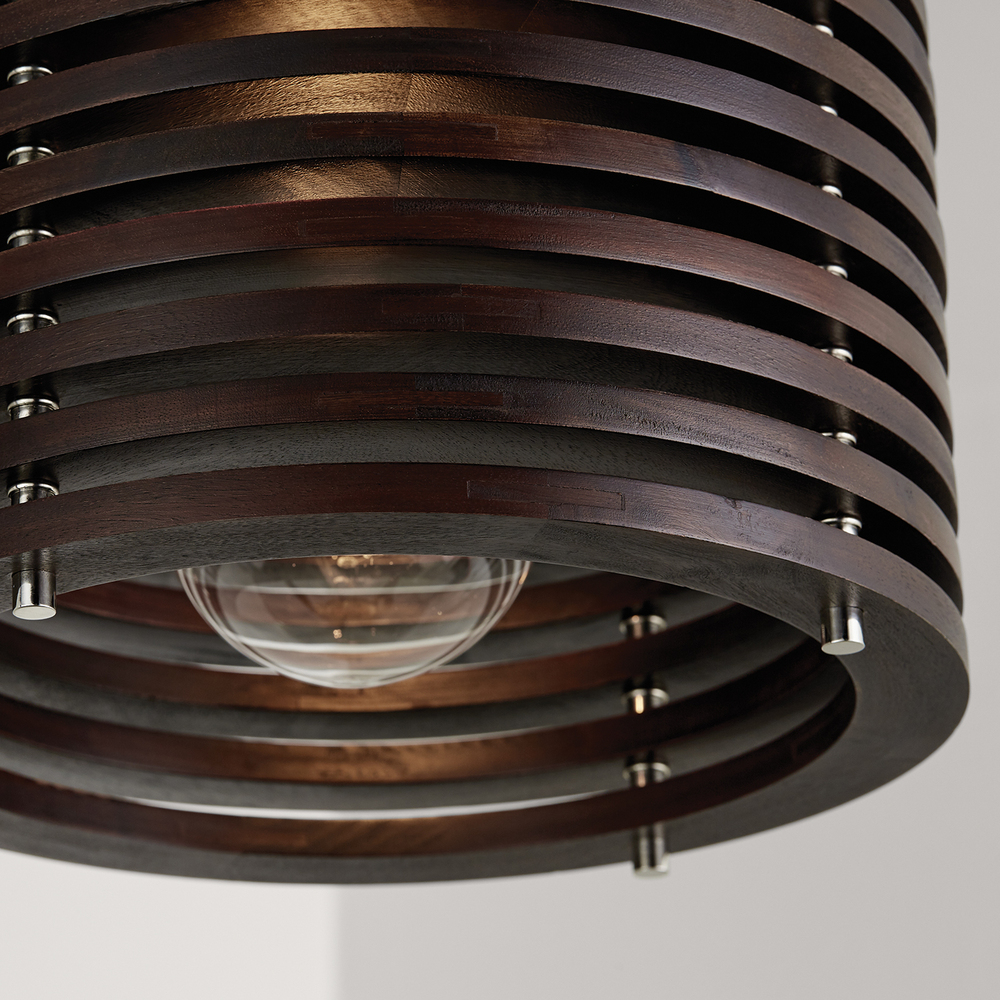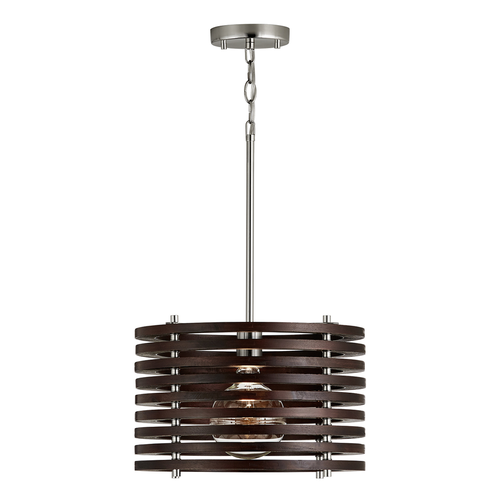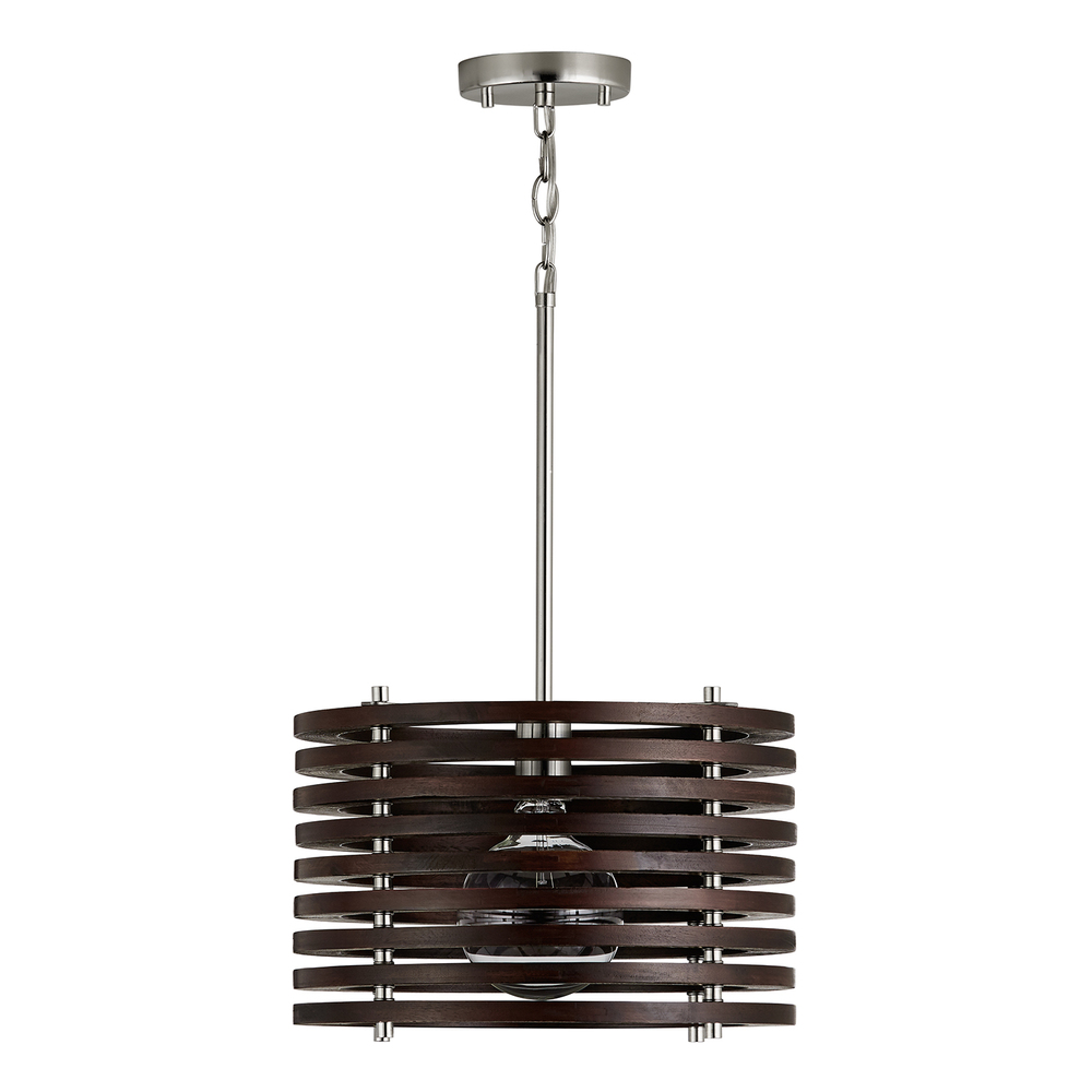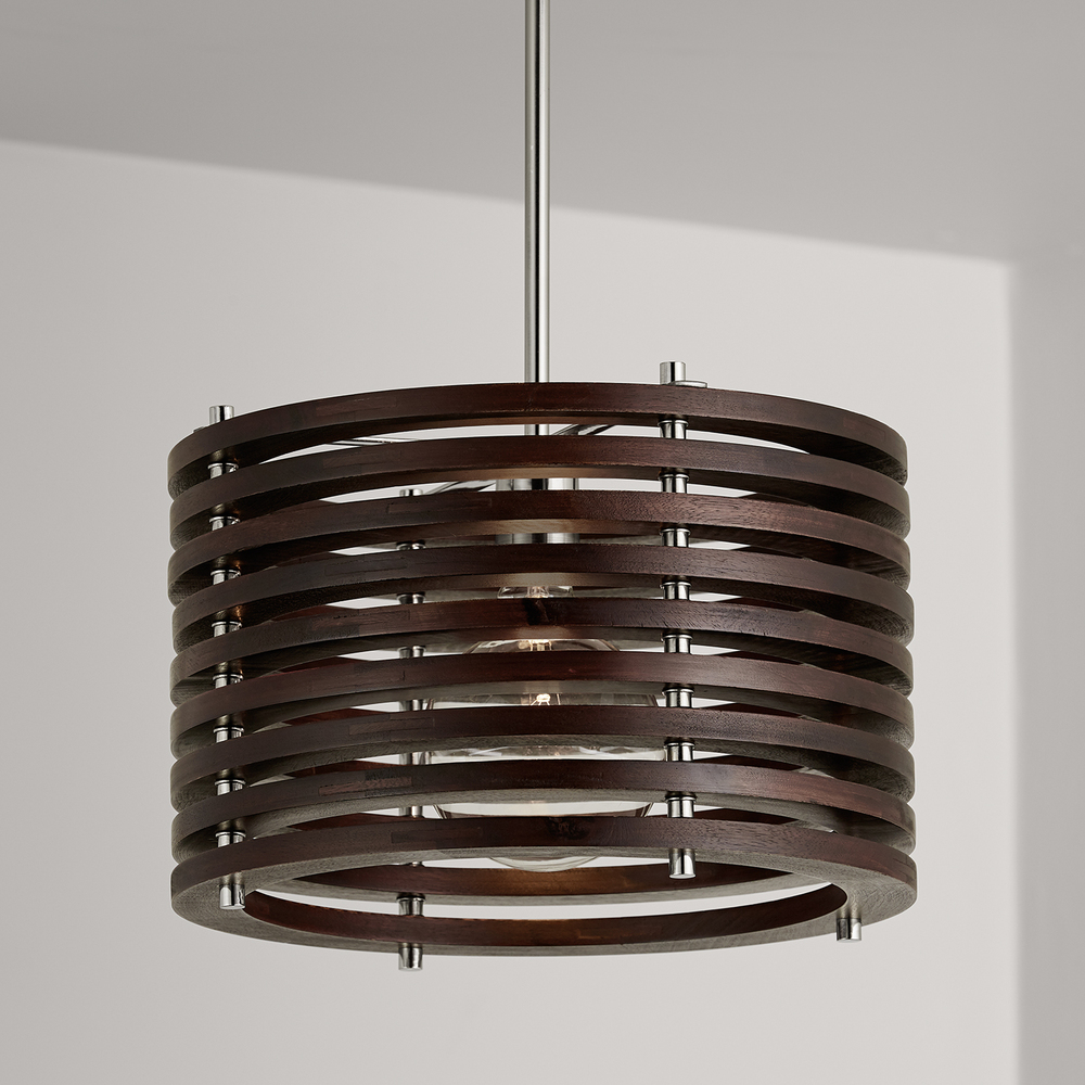 Dalton 339911DN 1-Light Pendant in Dark Wood and Polished Nickel