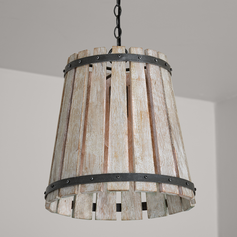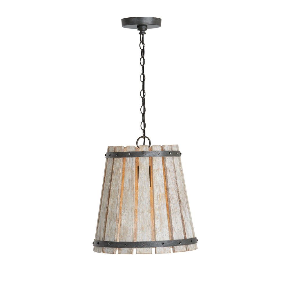 Remi 340411WN 1-Light Pendant in Brushed White Wash and Nordic Iron