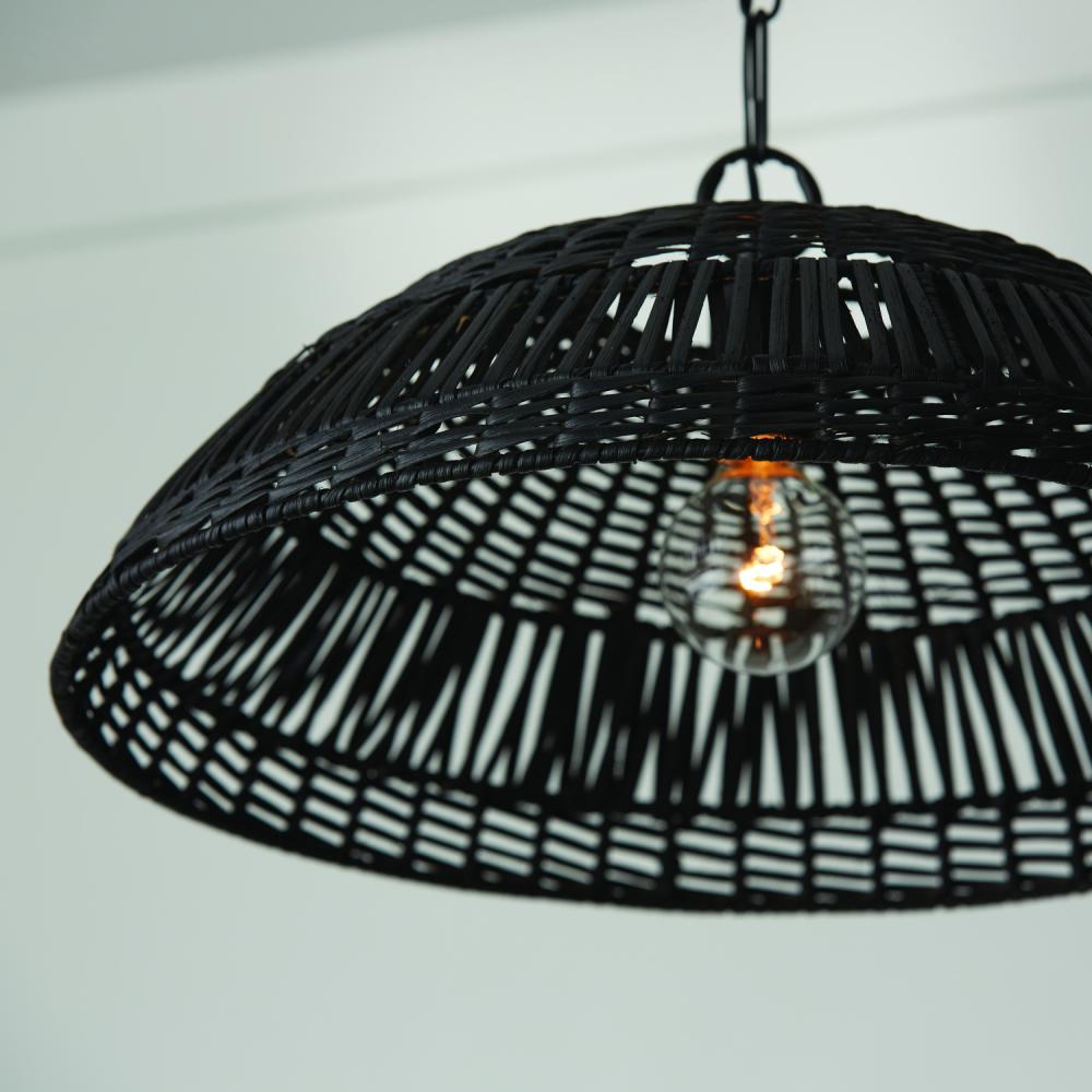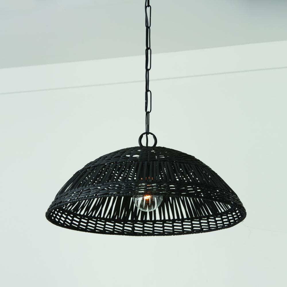 21"W x 9.25"H 1-Light Pendant in Matte Black with Hand-Woven Painted Rattan Basket
