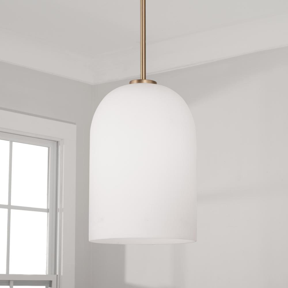 8.75"W x 13.5"H 1-Light Pendant in Aged Brass with Soft White Glass