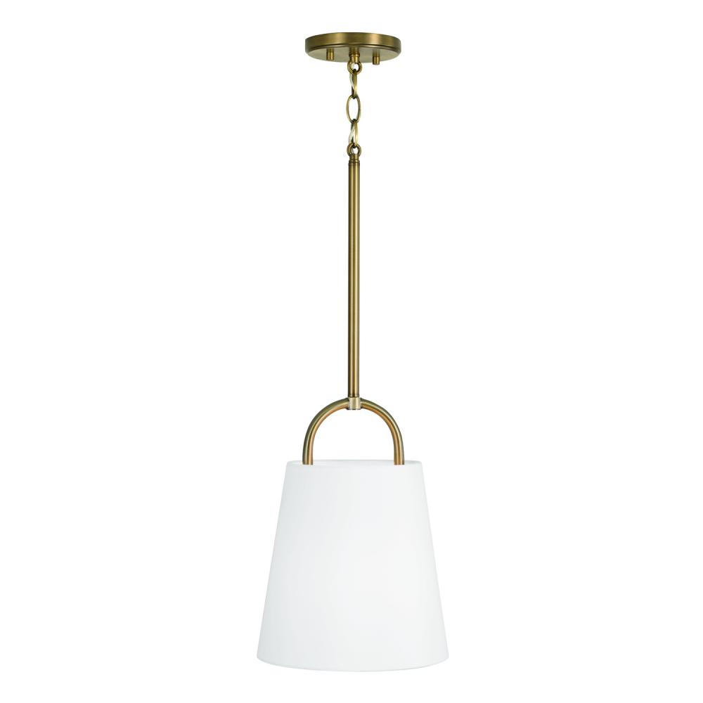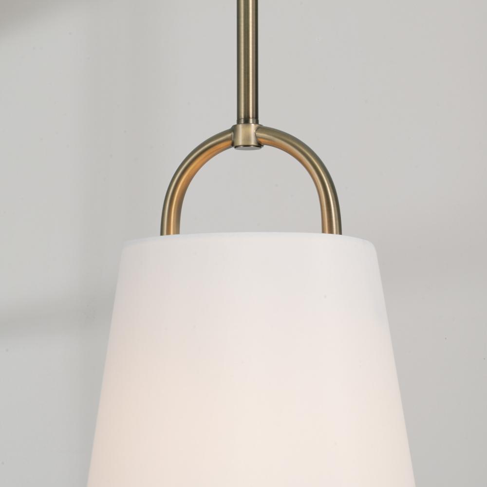 10"W x 13.75"H 1-Light Pendant in Aged Brass with White Fabric Shade