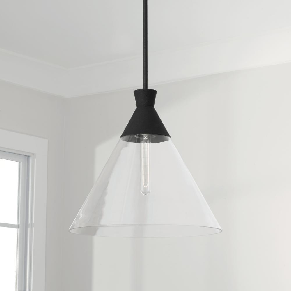 15"W x 14"H 1-Light Pendant in Textured Black with Clear Glass