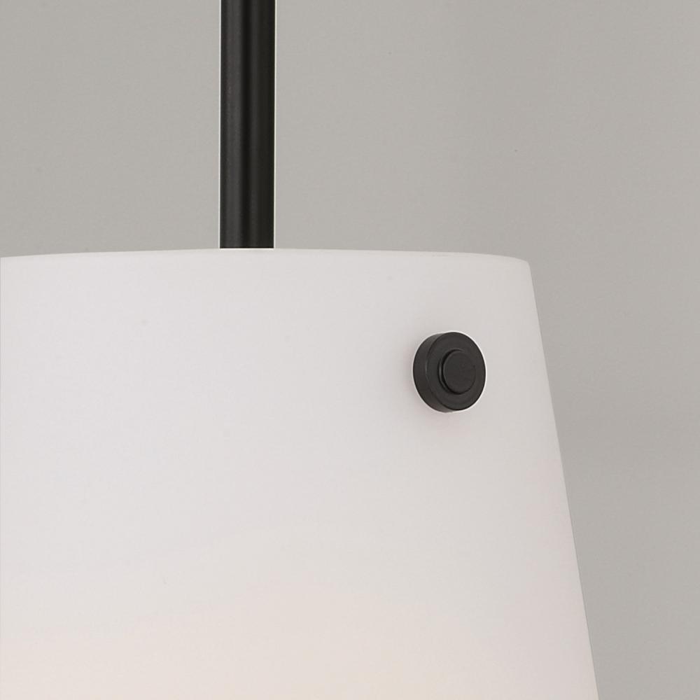 The Averitt Pendant delivers elegant transitional style with grand scale. The exposed rivet details and unique rounded, recessed bottom add high design to the elongated Soft White glass tapered shade, while the Matte Black finish creates sophisticated contrast.