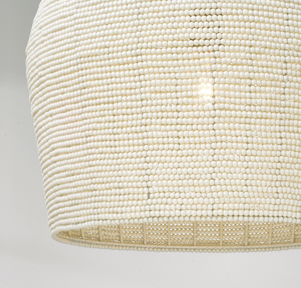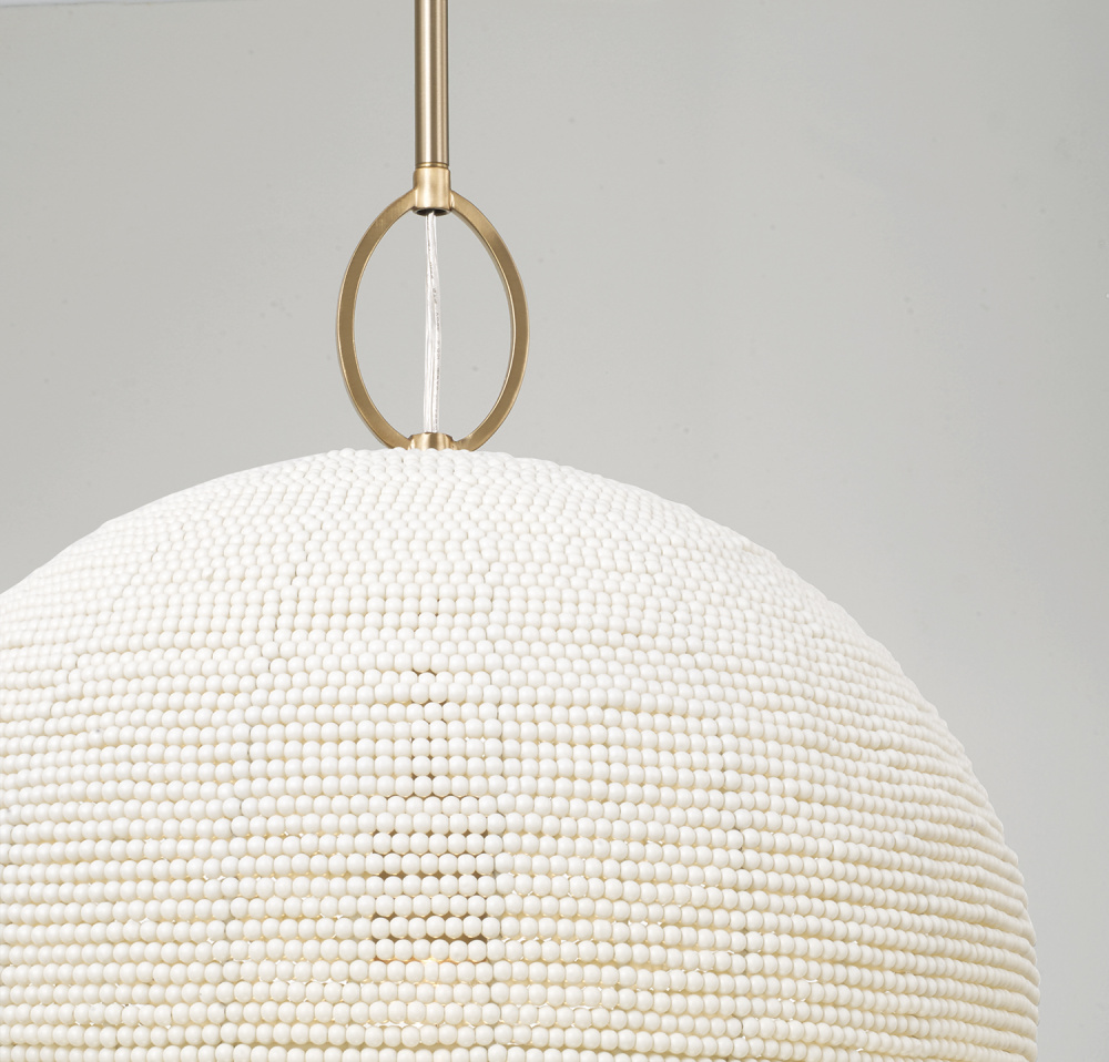 Bring a stunning display of artisan style to any space with the Natalia Small Pendant. Beaded by hand into a beautiful dome silhouette, this luminaire strikes a delicate balance of intricate and robust. For an extra tailored touch, each fixture comes with an optional oversized loop accent at the top. Finished in Aged Brass for timeless shine.