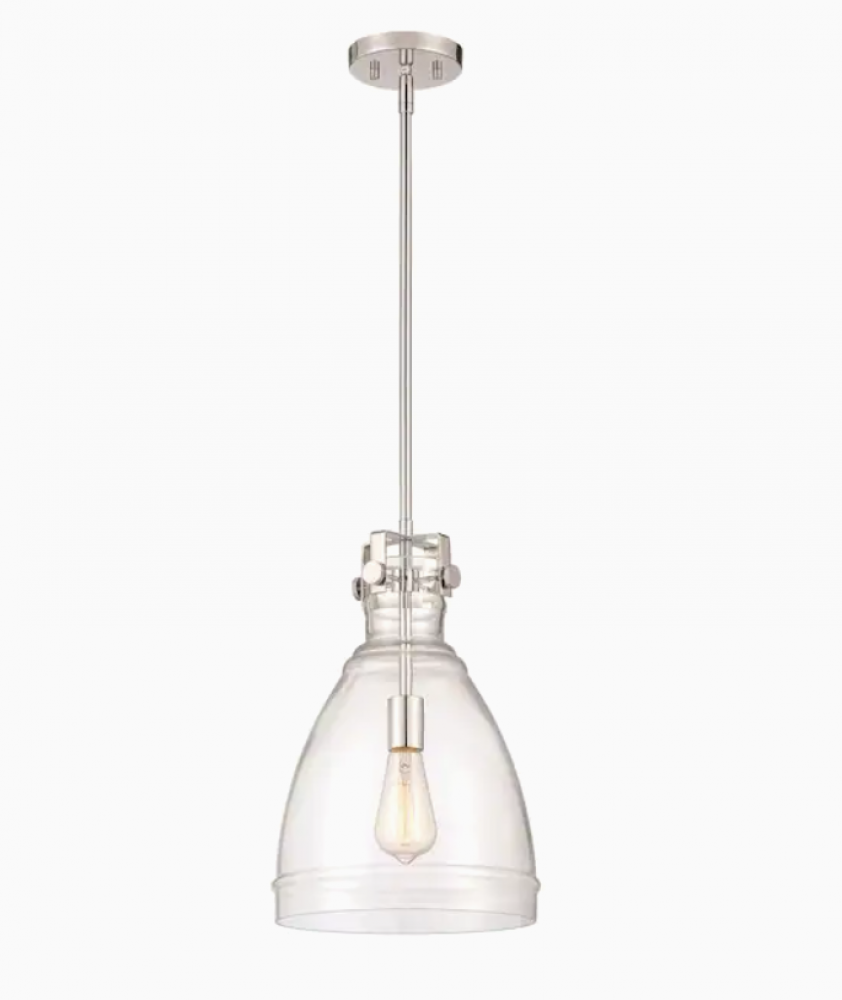Polished Nickel 1 Light Pendant with clear glass shade is part of the Beechmont collection