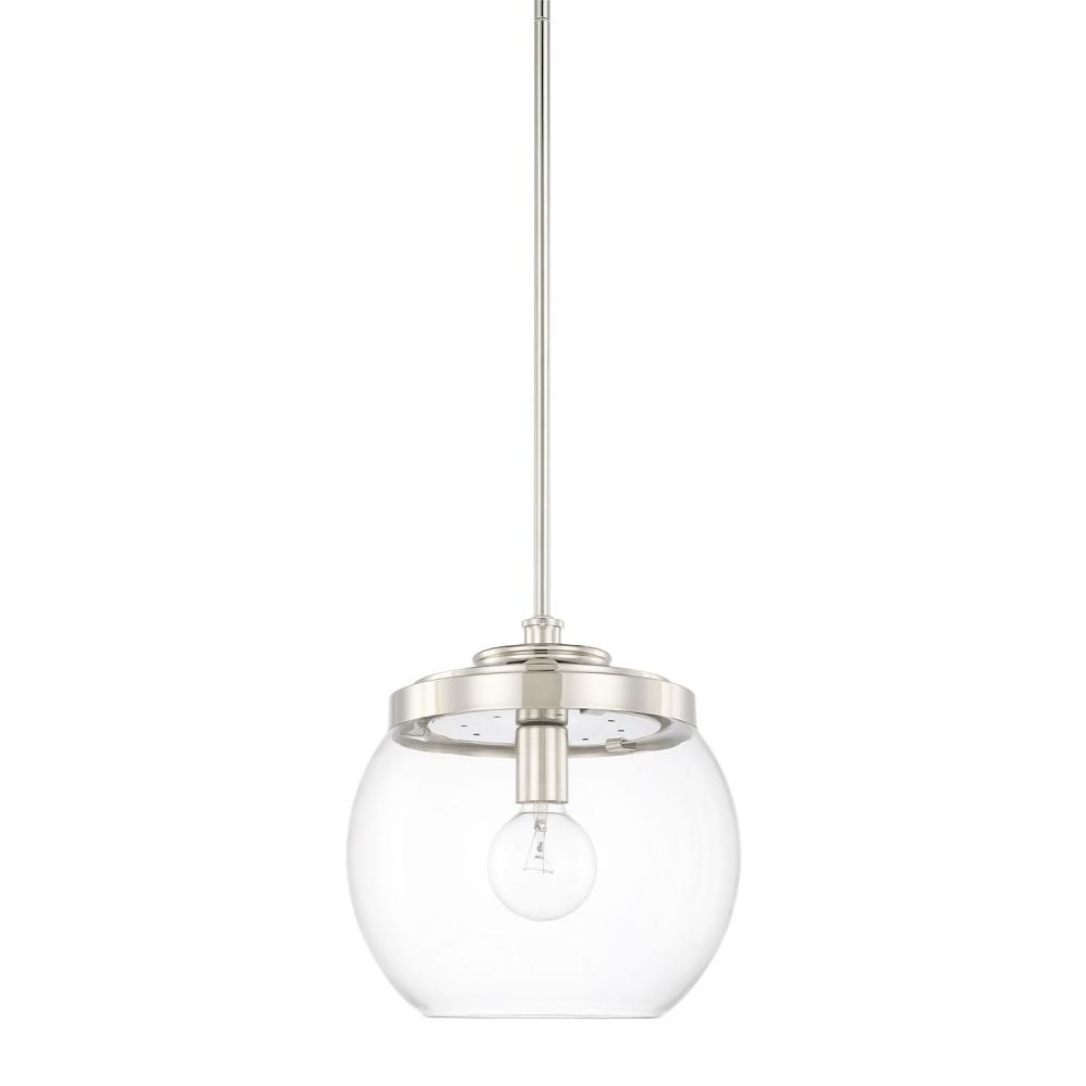 This Light Pendant Gives Off A Mix Of Transitional, Contemporary And Mid-Century Vibes. The Mid-Century 1-Light Pendant May Be Used As A Pendant Above The Kitchen Island, Home Bar Or A Breakfast Nook Or May Be Used As A Semi-Flush Mounted Light. Versatile And Stylish, This Fixture Comes In A Polished Nickel Finish With A Rounded, Clear Glass Shade. It Could Be Paired With Its Aged Brass Counterpart To Play Up The Mixed Metal Trend.