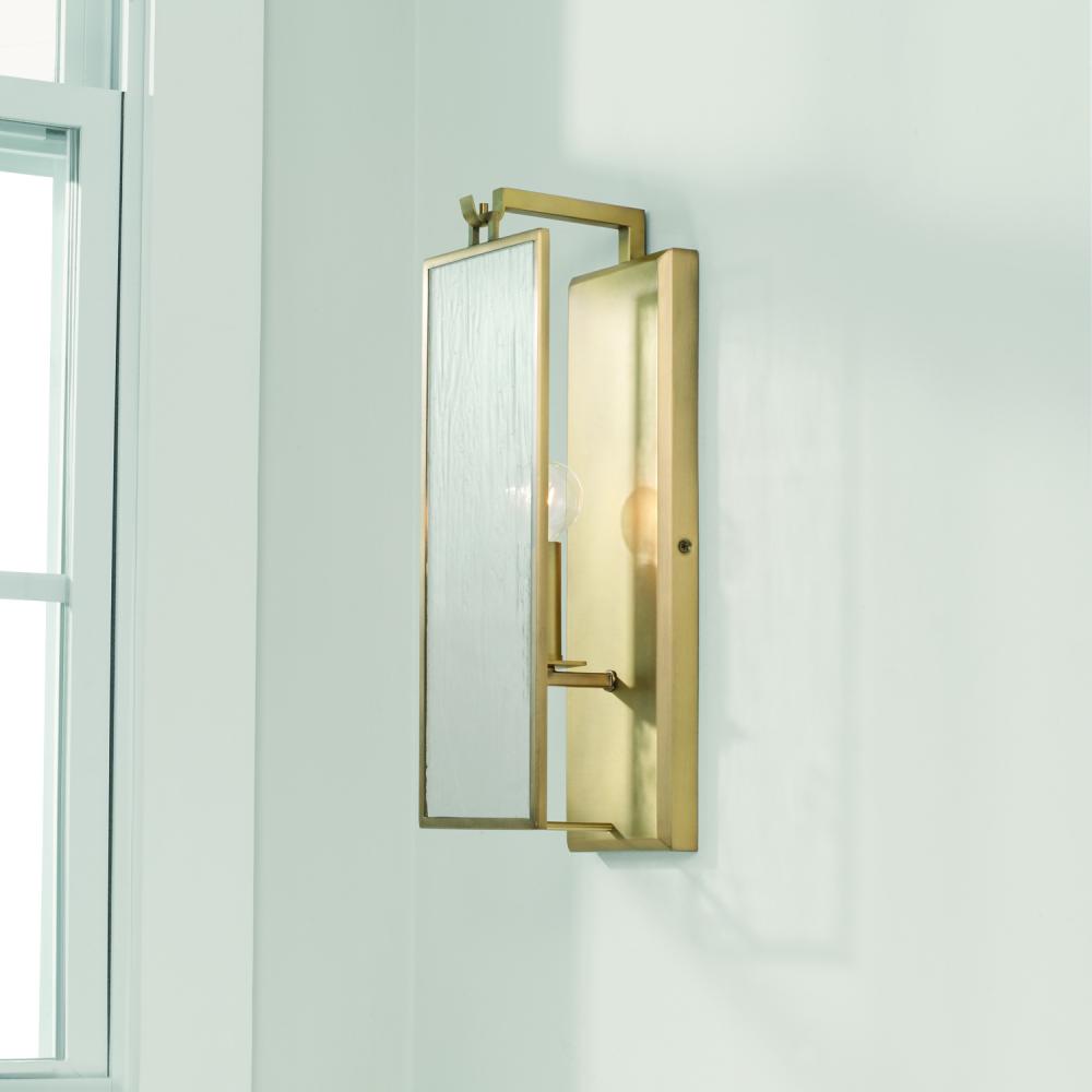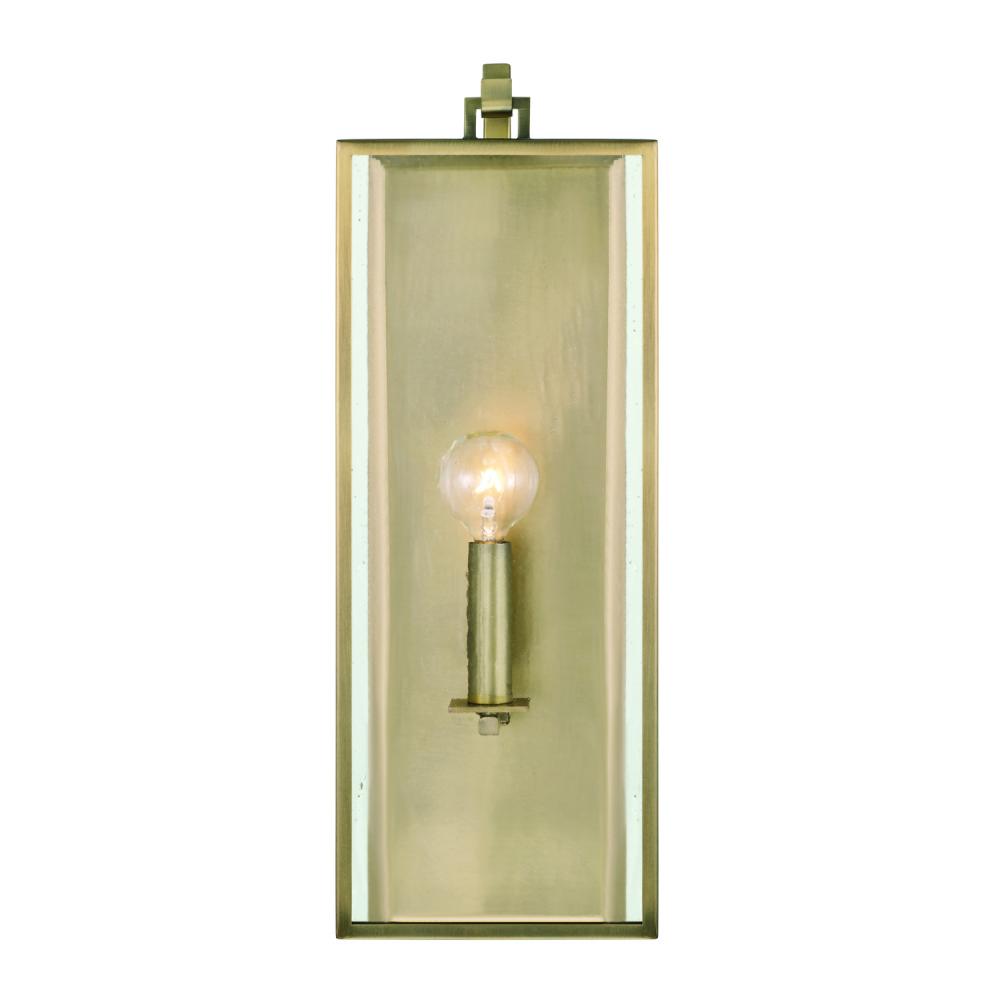 6"W x 17.25"H 1-Light Sconce in Aged Brass with Antiqued Rain Glass