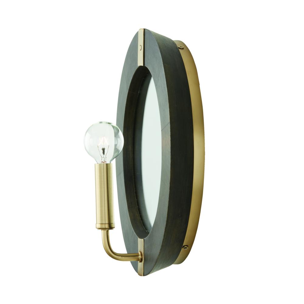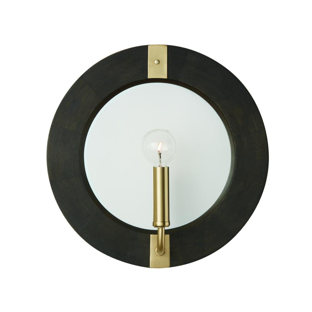 12"W x 12"H 1-Light Sconce in Black Stain Wood and Matte Brass with Mirrored Backplate