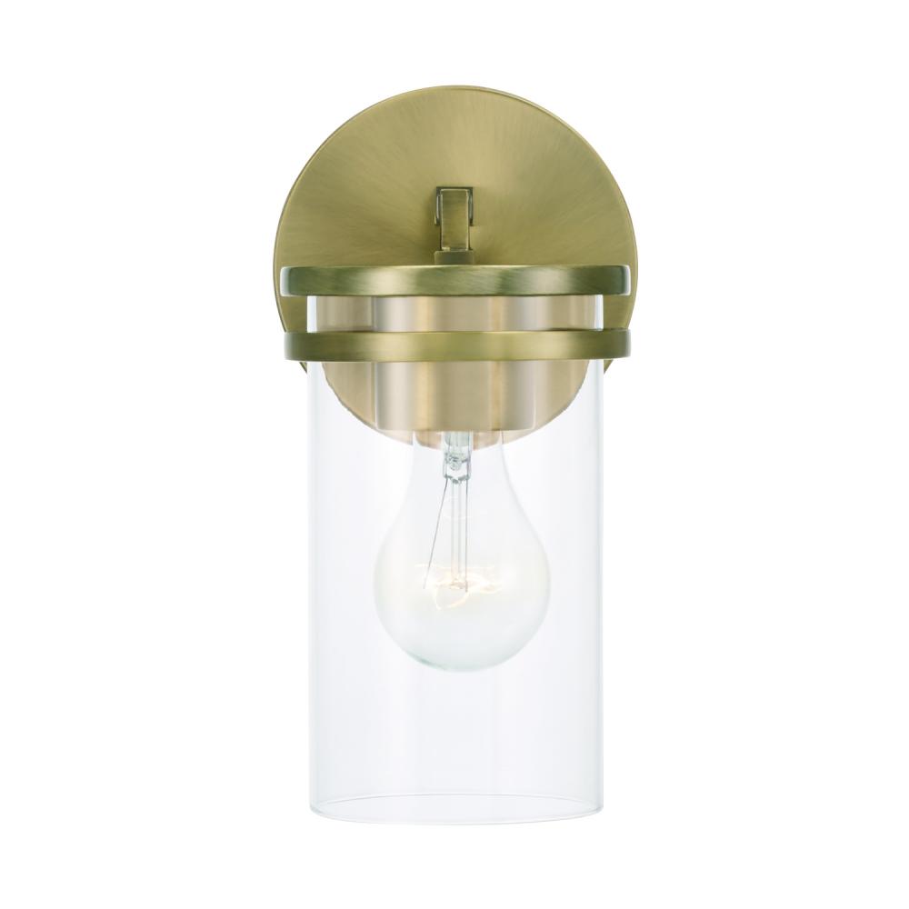 5"W x 9.75"H 1-Light Sconce in Aged Brass with Clear Glass