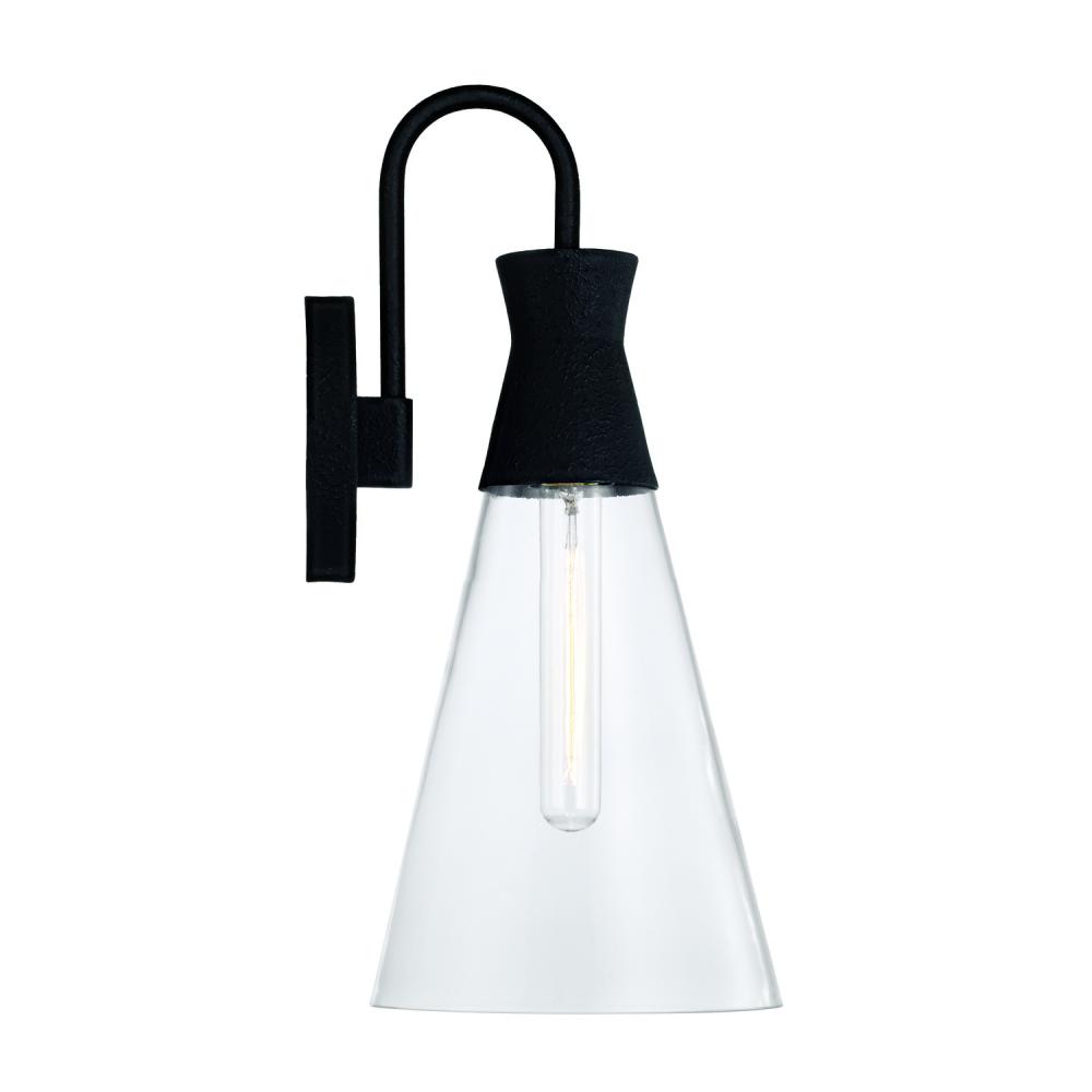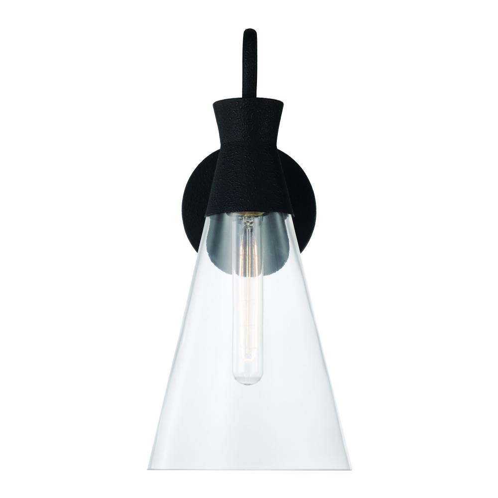7.25"W x 16.25"H 1-Light Sconce in Textured Black with Clear Glass