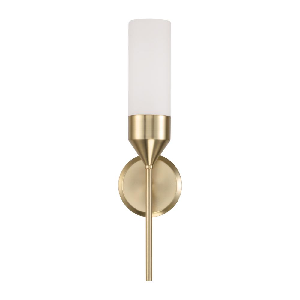 Undeniably sleek, the Devon 1-Light Sconce delivers elegant style in a familiar form. The slim, cylindrical Soft White glass creates an elongated design, while the Matte Brass finish evokes a mid-century aesthetic.