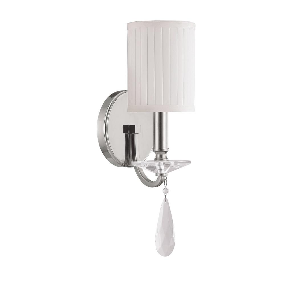 Lighting a traditional hallway or staircase with beauty and brilliance, our Alisa 1-light sconce is sure to charm with its opulent crystal accents, chic Polished Nickel finish. The single candle-style light has a removable pleated fabric shade for two distinctive looks.