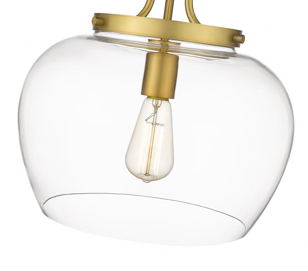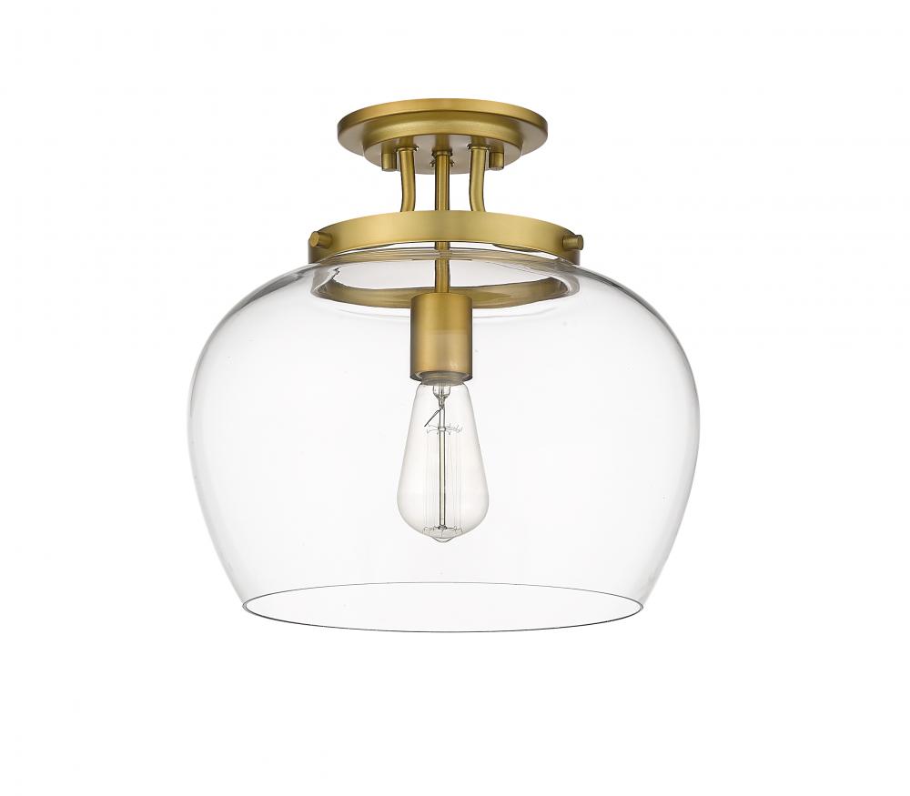 Warm brass offers a soothing richness to transitional spaces when the Joliet semi flush mount ceiling light becomes part of a d?cor scheme. Kitchens, hallways, and bedrooms come to life with the shapely silhouette of a large Bordeaux glass shade and an industrial-inspired frame crafted of olde brass finish steel.