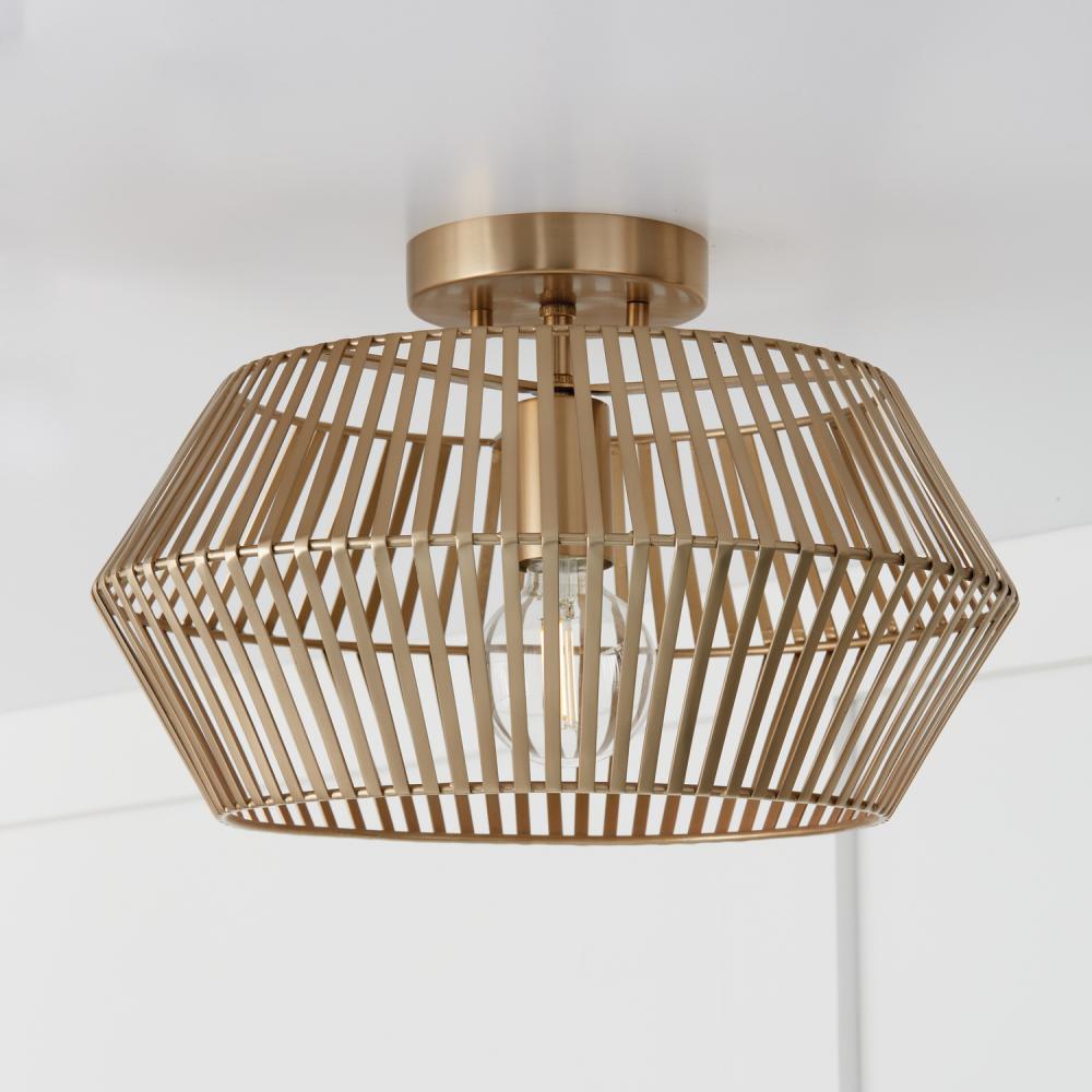 Modern metal meets elegant angles in the Kaiya Semi-Flush. The open design invites visual intrigue, while the Matte Brass finish creates show-stopping style.