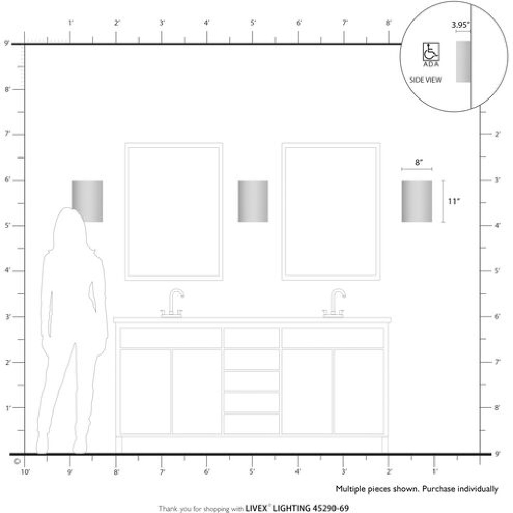 1 Light Shiny White ADA Sconce