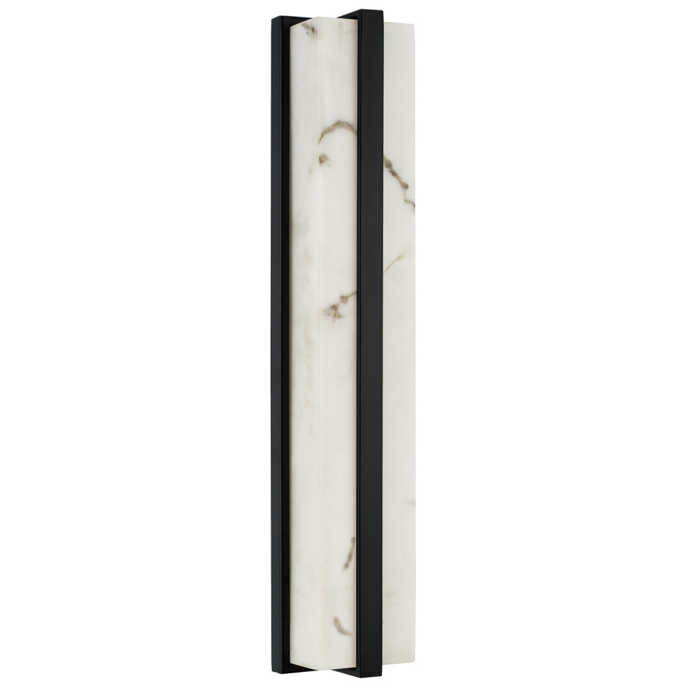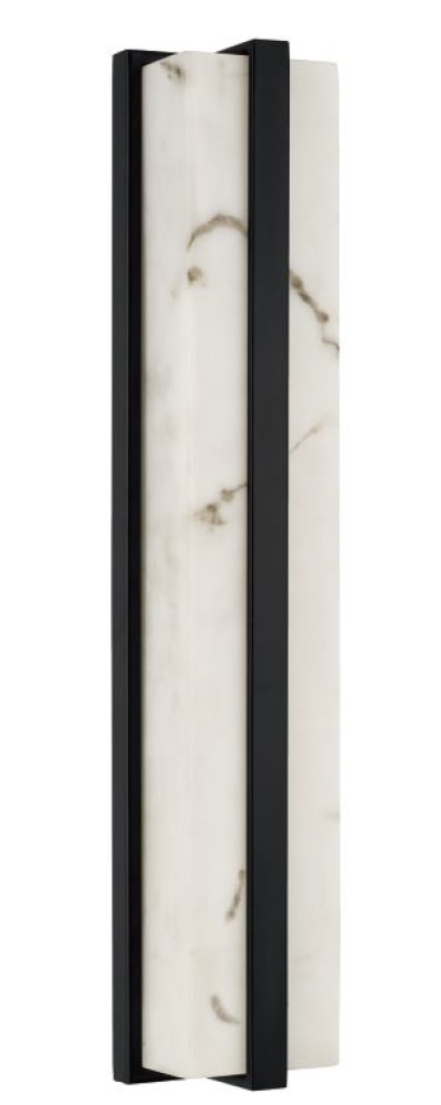 DETAILS: Streamlined and sleek, the rectangular form is crafted from Alabaster Glass with a full length Matte Black backplate and band, plus integrated LED technology.