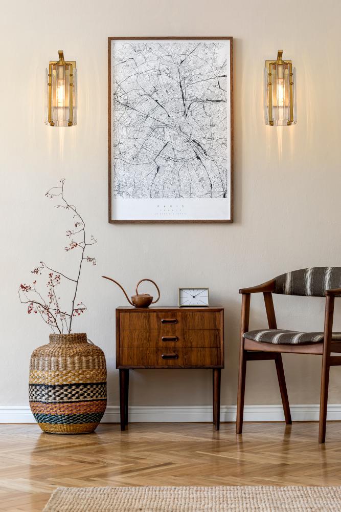 Illuminate a bathroom vanity space with this beautiful, transitional one-light wall sconce that lends a classical Art Deco-inspired industrial flair. A rubbed brass finish steel mount and arm offer a metallic touch and suspend a clear glass cylindrical globe that offers a hand blown-like artisan feel with subtle rippled effects.