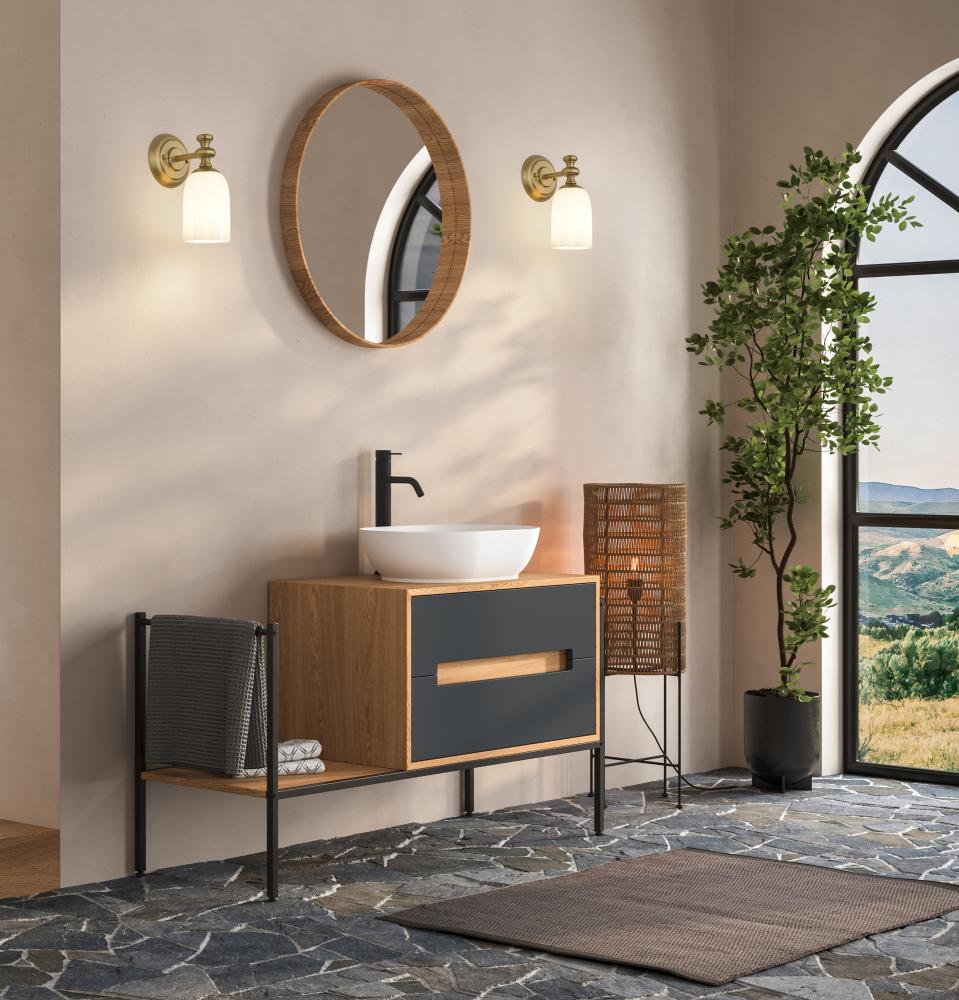 The Orion vanity series is enhanced by a flourish at the top of each frosted glass shade that brings a delicate design sensibility. Orion can be ordered in a choice of Brushed Nickel, Matte Black, Chrome, and Modern Gold finishes.