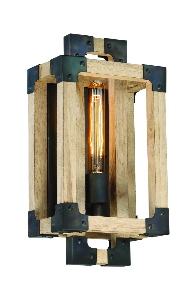 Cubic 1 Light Wall Sconce in Fired Steel/Natural Wood