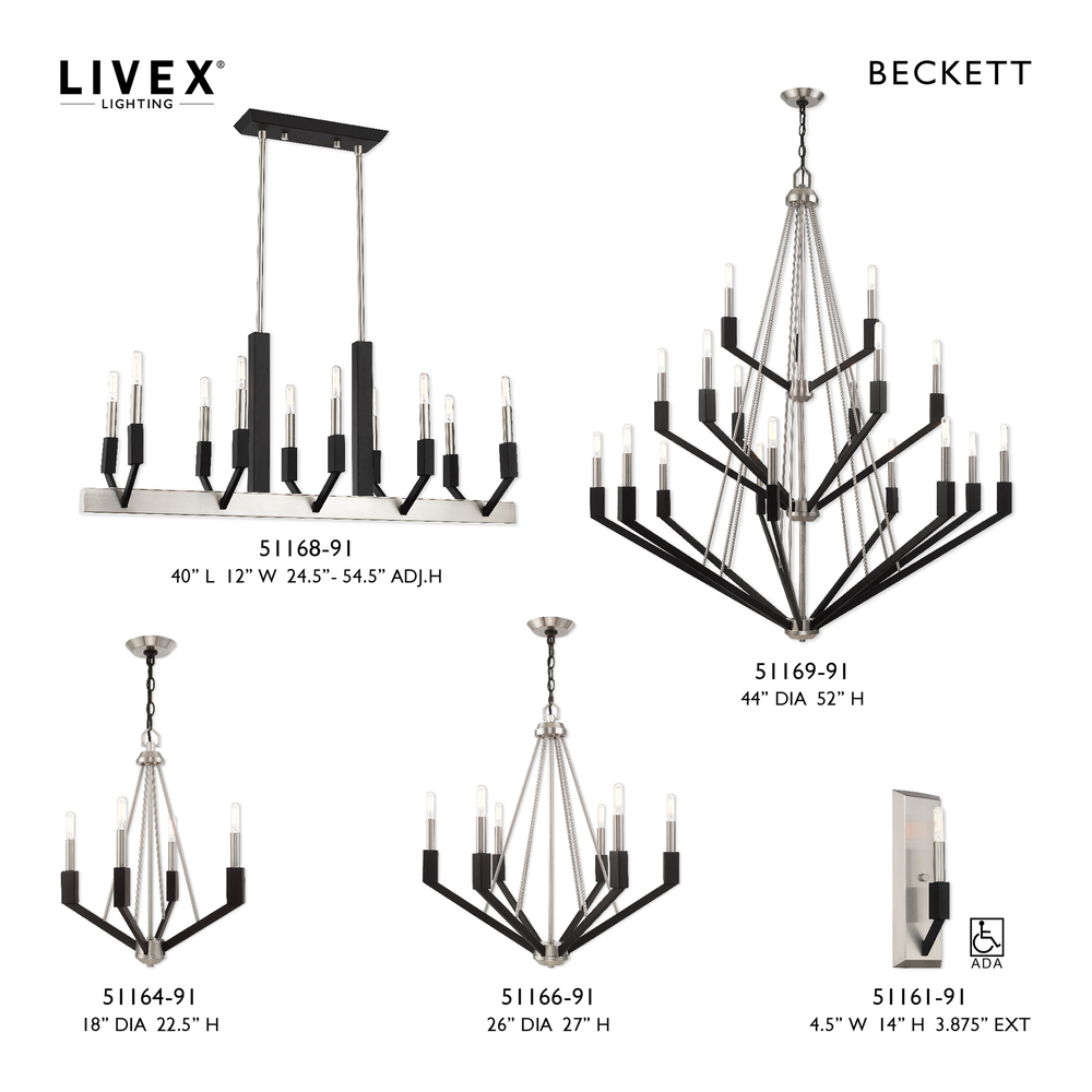 Livex Lighting 51168-91 - 10 Lt Brushed Nickel & Black Linear Chandelier