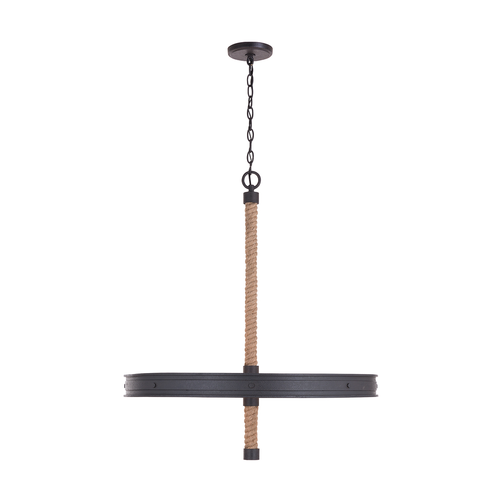 10 light chandelier with Rustic Iron finish, natural rope.