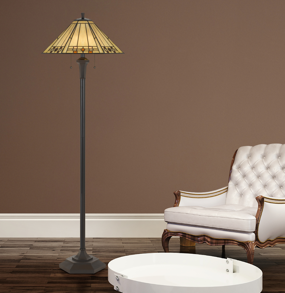 CAL Lighting BO-3015TB - 60W x 2 Tiffany table lamp with pull chain switch with resin lamp body