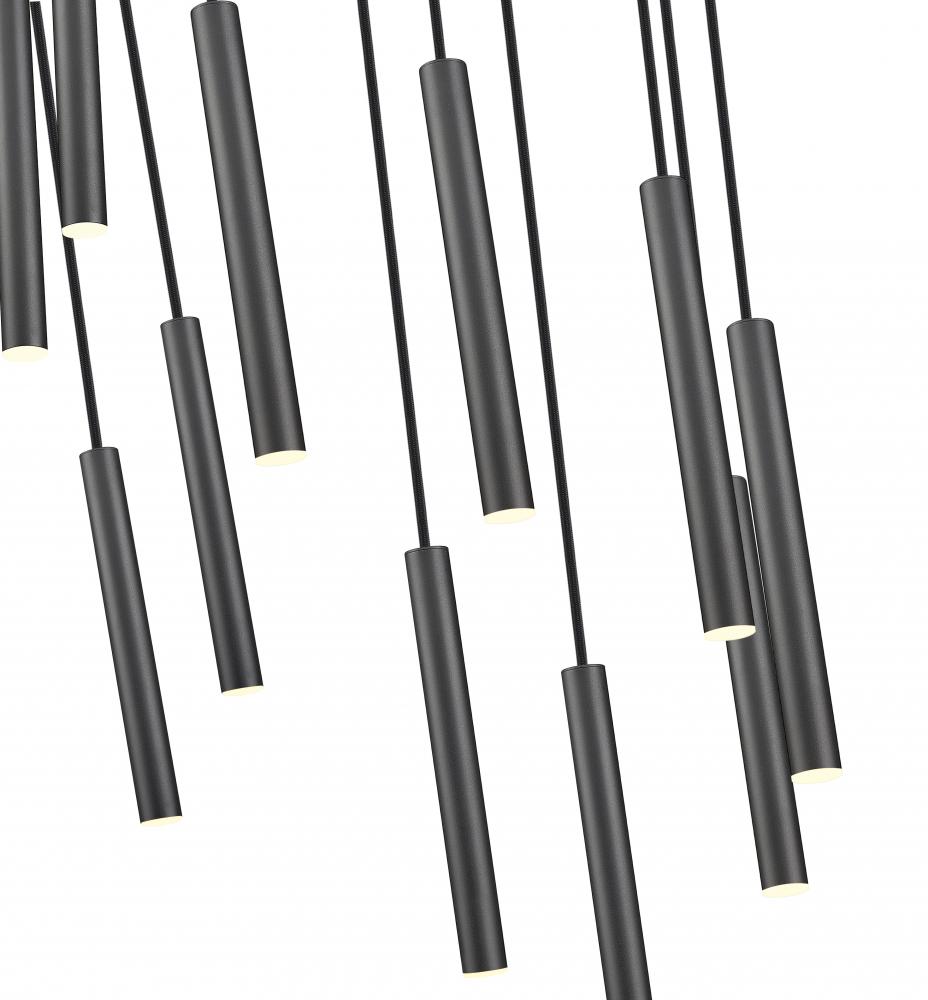 Bold shapes and chic curves collide in the eye-catching Forest modern 11-light chandelier. Its matte black finish is crisp and rich, creating a compelling contrast against your wall and ceiling. Its staggered light heights add movement and stylish flair, while integrated LEDs provide bright, energy efficient illumination.