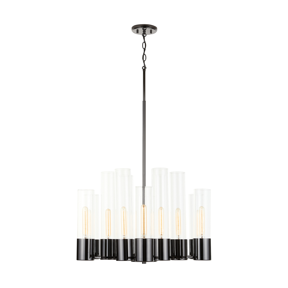 12 light chandelier with Black Chrome finish and Clear glass.
