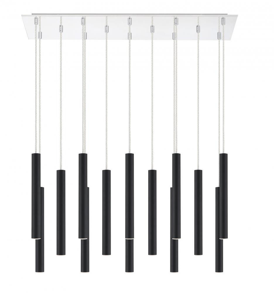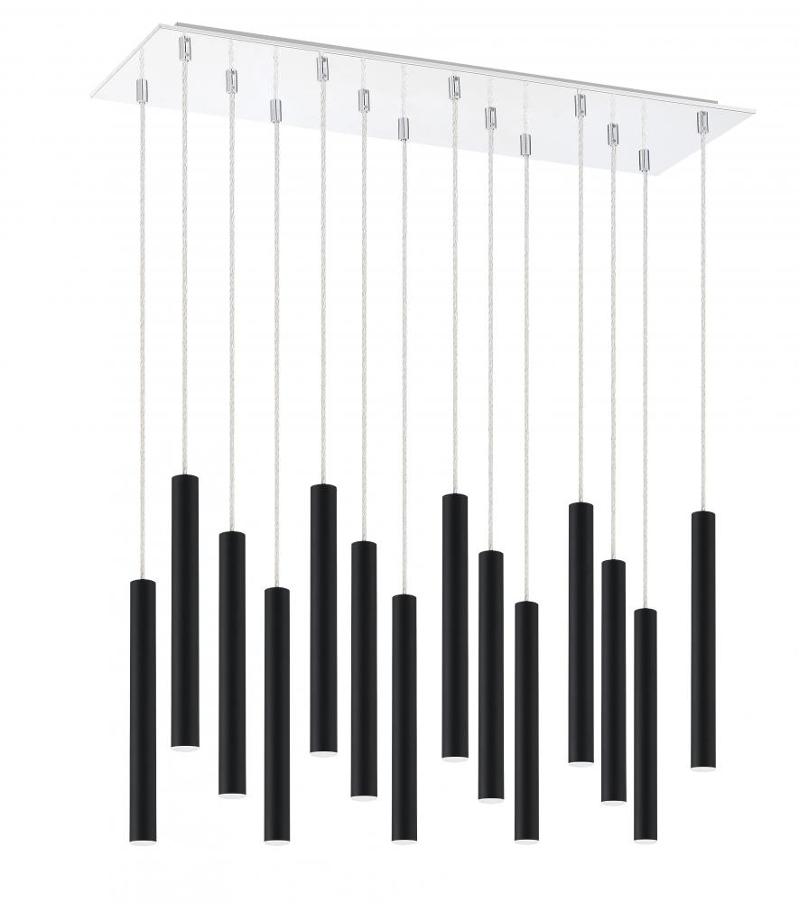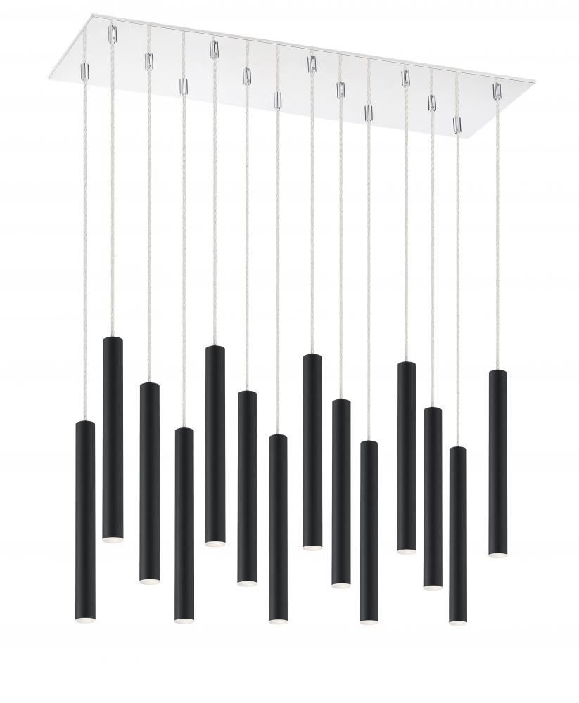Celebrate modern sculptural style with the windchime-inspired silhouette of this fourteen-light pendant light. In matte black, the elongated shapes craft a sophisticated visual.